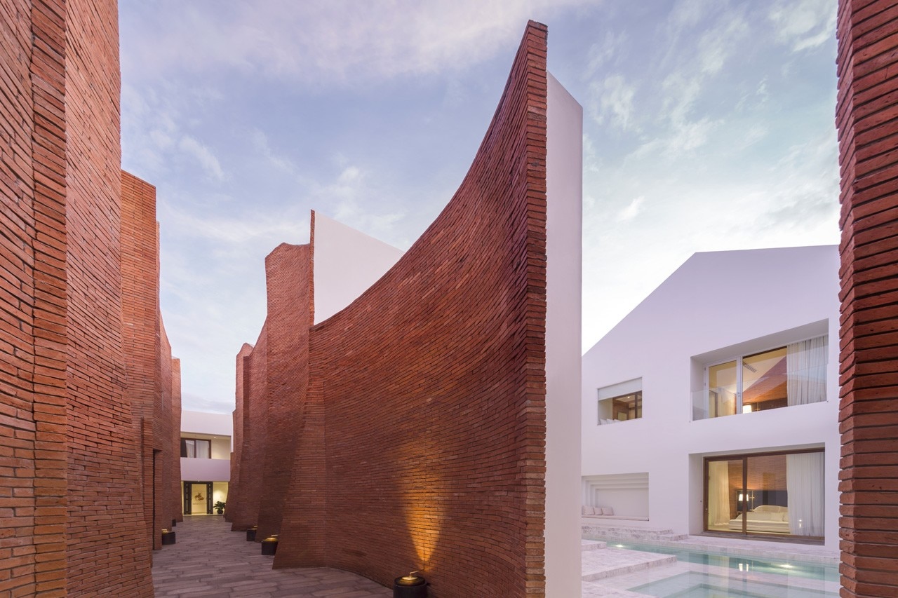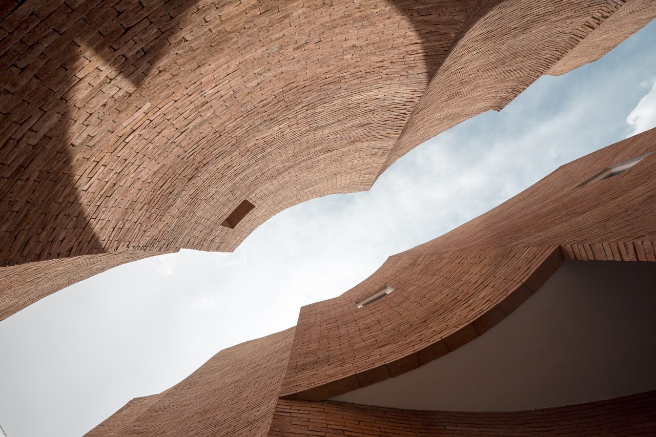 They exhibit the local craftsmanship of brickworks, juxtaposed with the simplicity and neatness of the white walls and a solution to the problem of annual flooding, inspired by Chand Baori Step Well in Rajasthan, India.