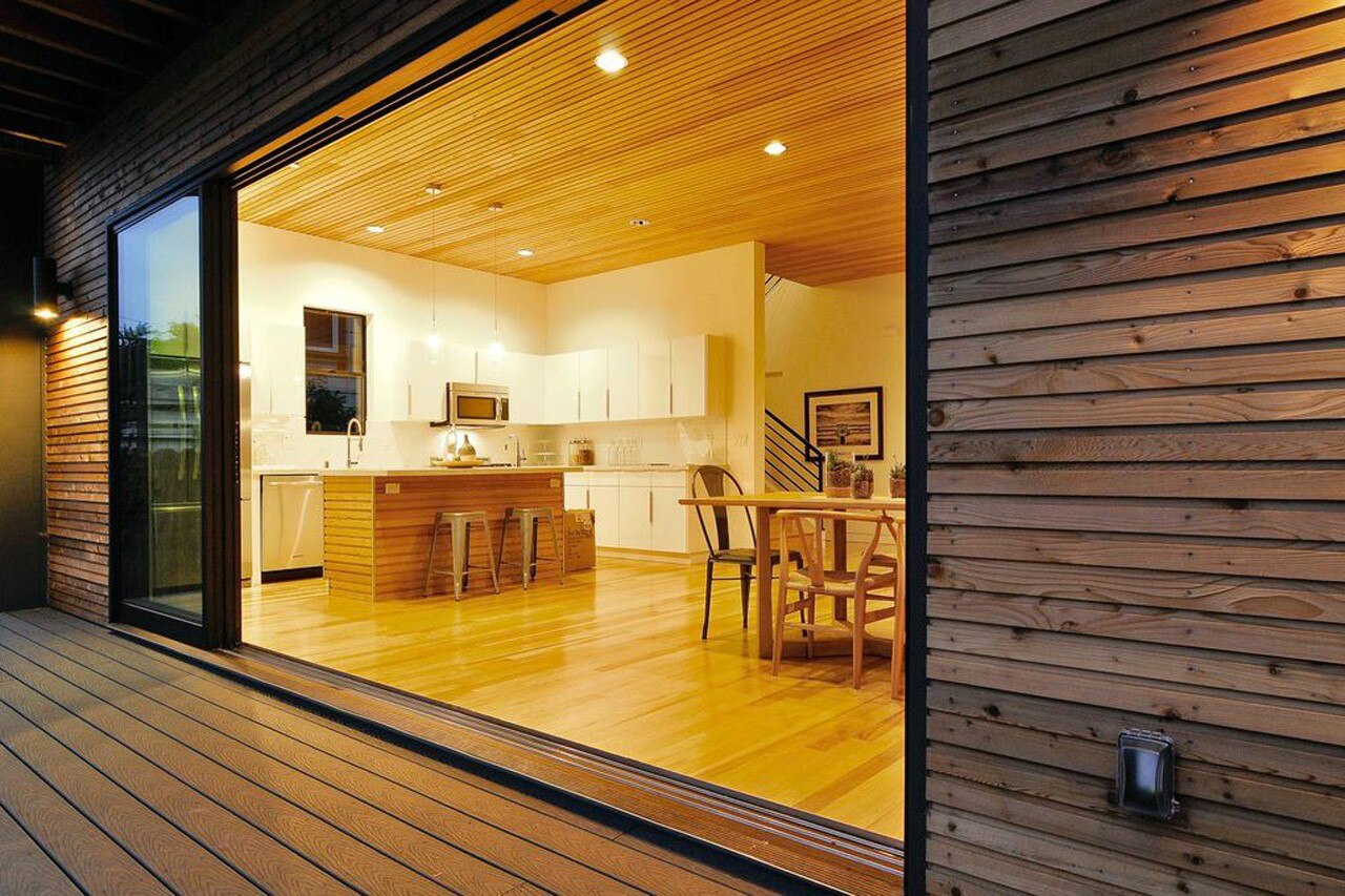 The color and material expression on the exterior recall an industrial aesthetic, which further links it to the industrial areas of the nearby context, while the wood maintains the warm residential feel. Elements are carried through from outside to inside to maintain connections throughout the project as a singular experience.