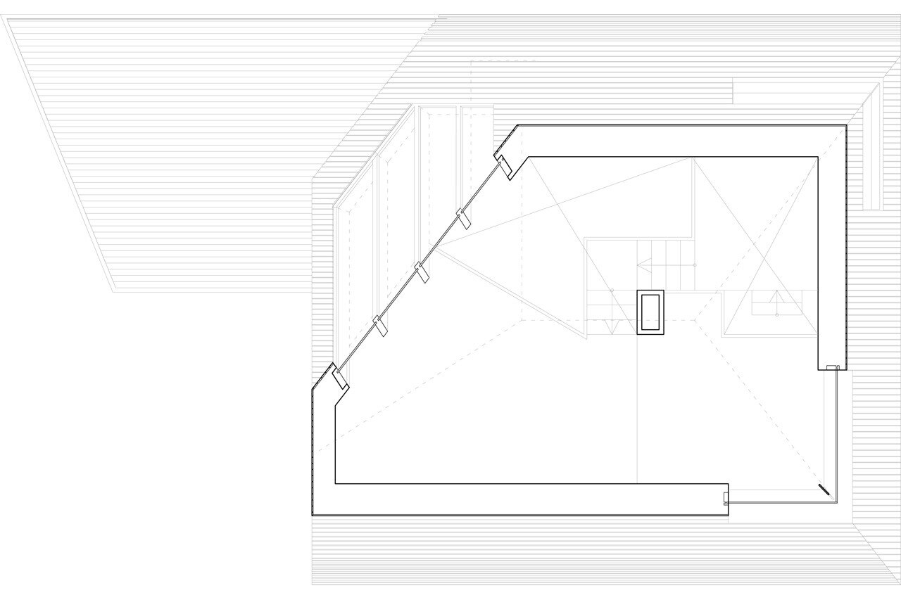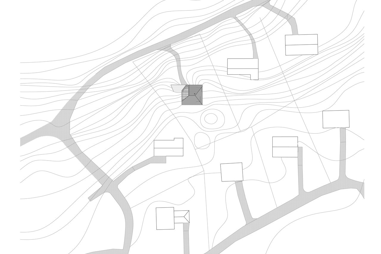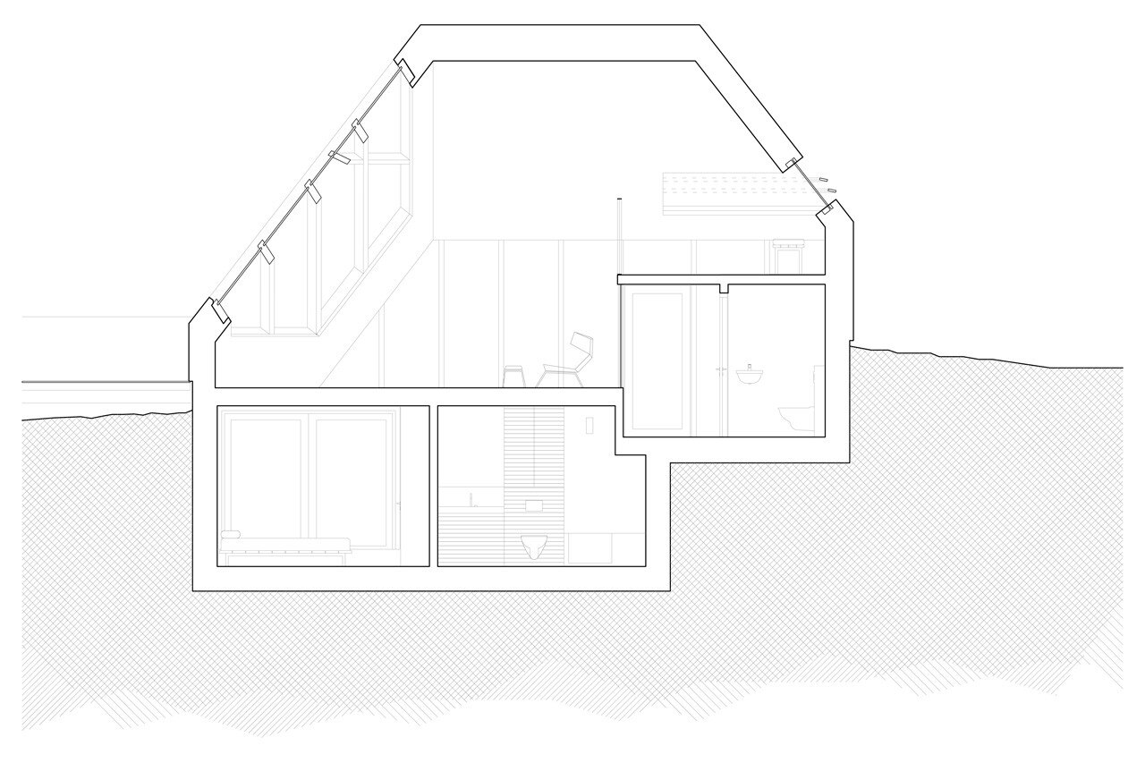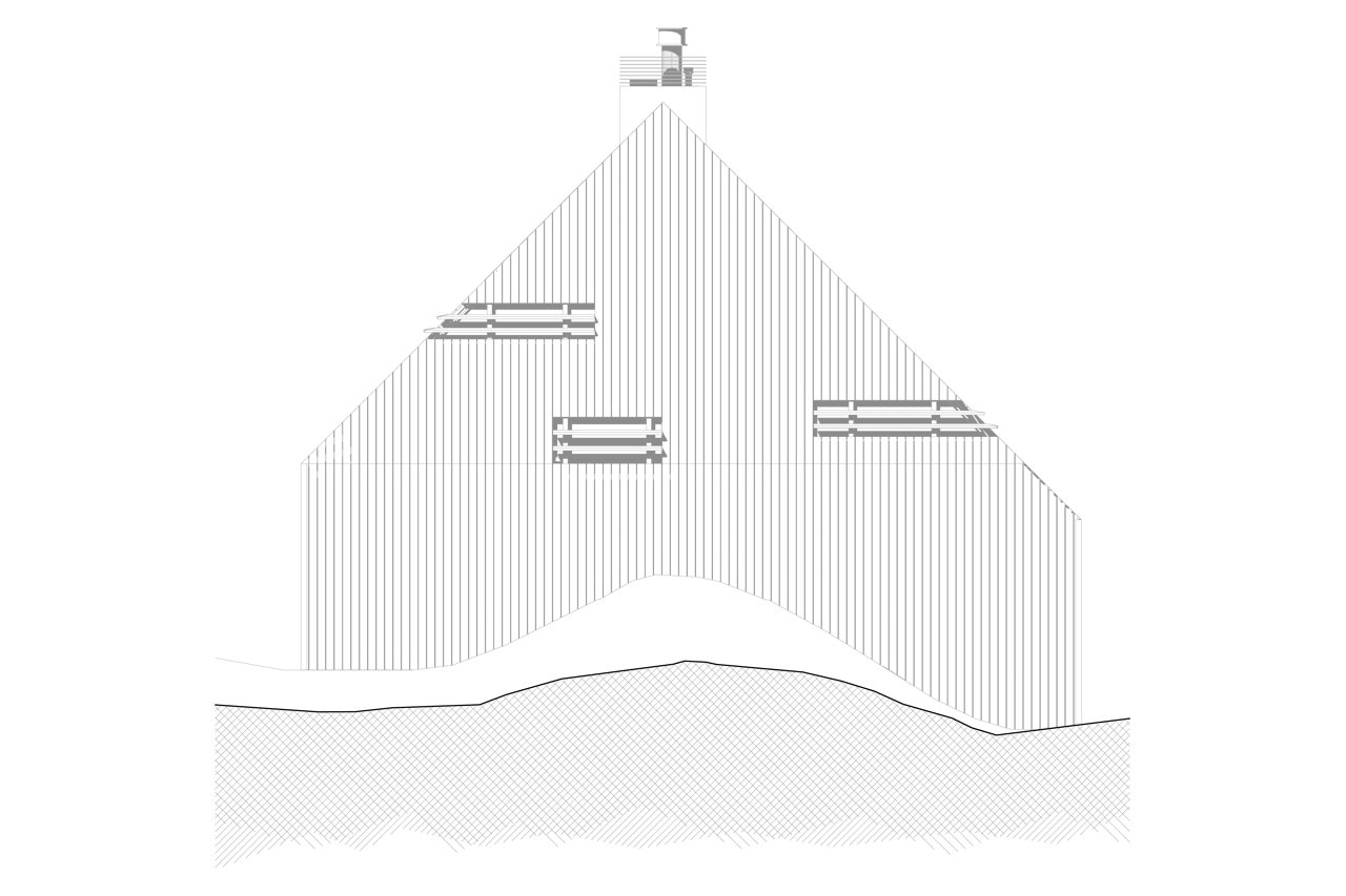 This results in a peculiar architectonic object, a wooden diamond that is experienced very differently from each of its sides, is fully integrated in the landscape and yet also makes a strong but subtle connection between its interior and its immediate surroundings.
