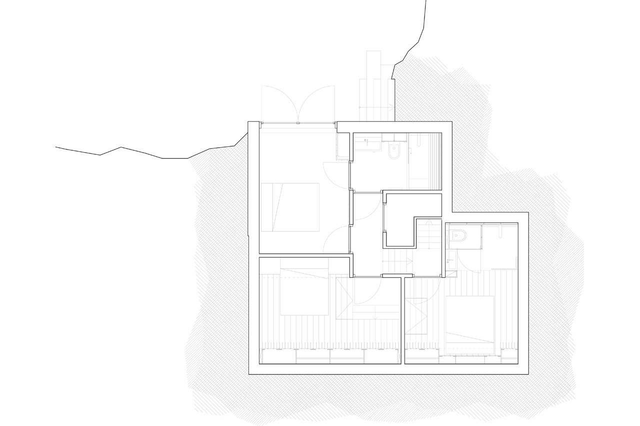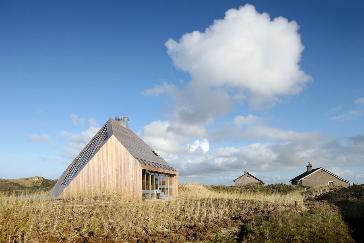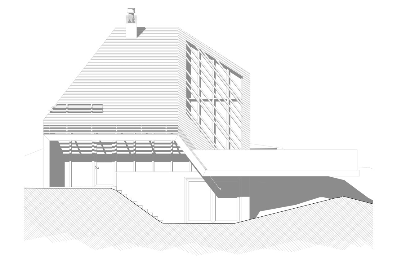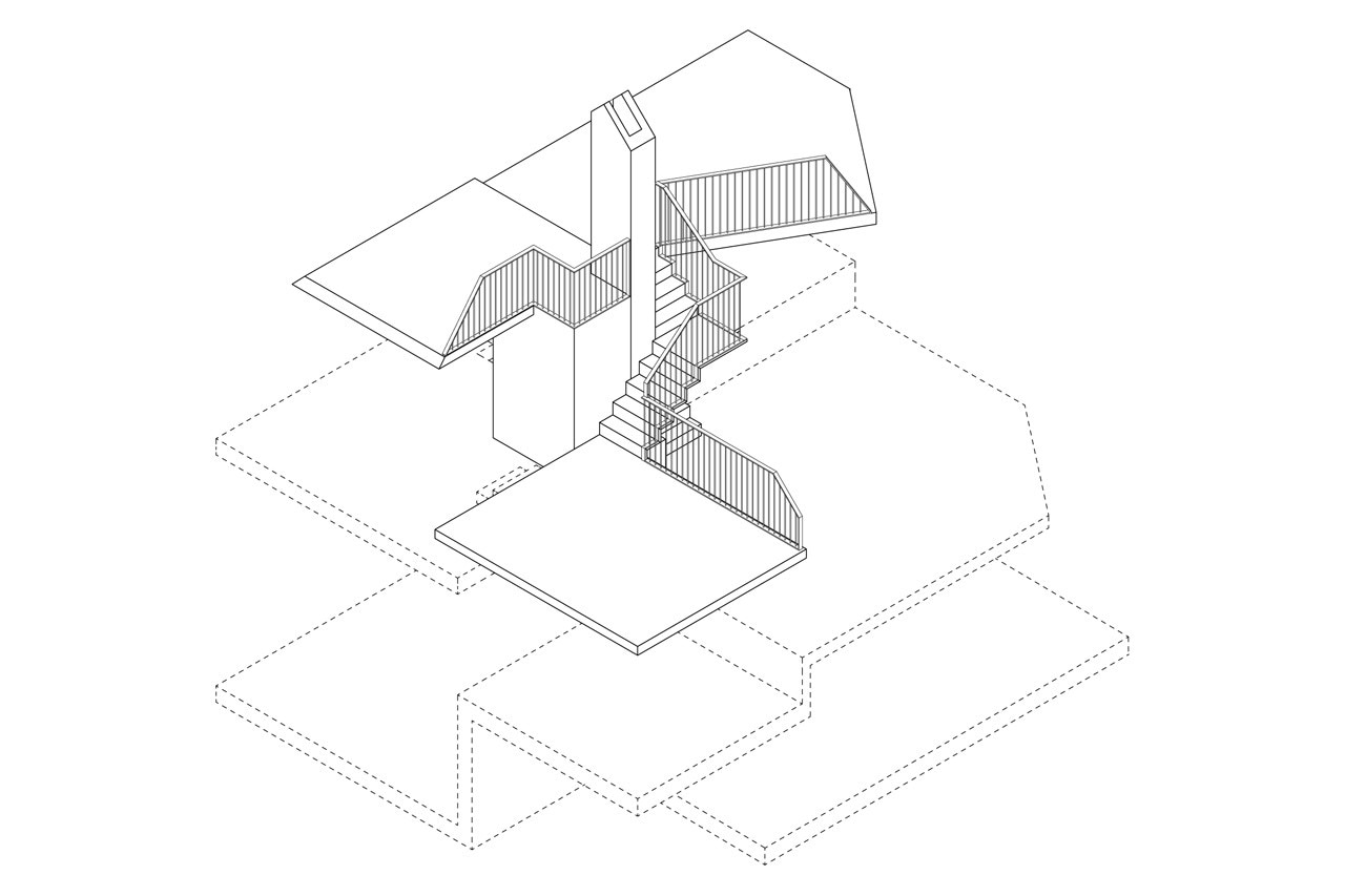 This results in a peculiar architectonic object, a wooden diamond that is experienced very differently from each of its sides, is fully integrated in the landscape and yet also makes a strong but subtle connection between its interior and its immediate surroundings.