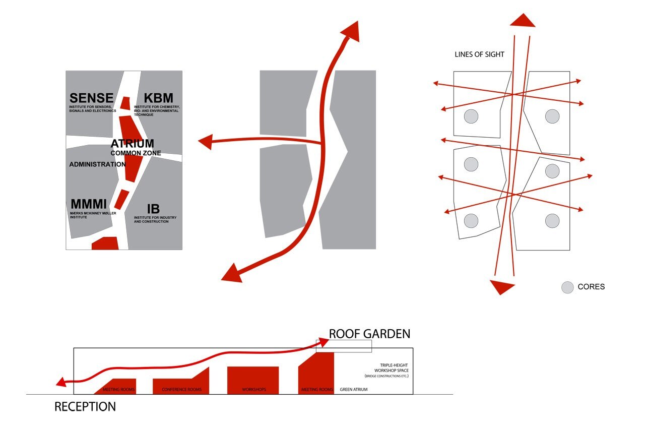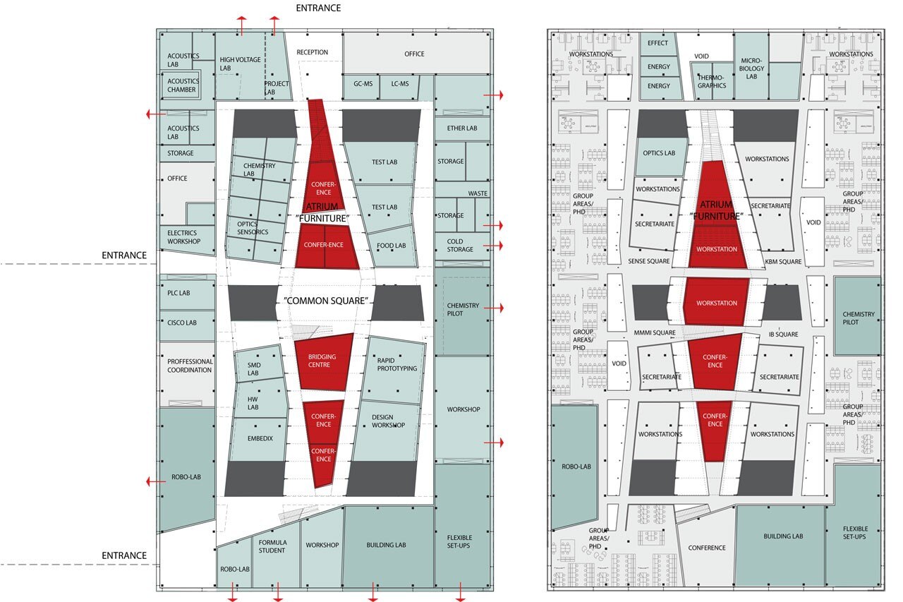 The four institutes sharing the building are conducting world-class research in various fields such as material and construction science, nano-optics, environmental sciences and robotics. As a result, the building will house several spectacular pieces of equipment such a one of Denmark’s largest distillation plants, vibration-free and climate-controlled laser optics labs and a special ultra-high strength concrete slab for testing structural loads.