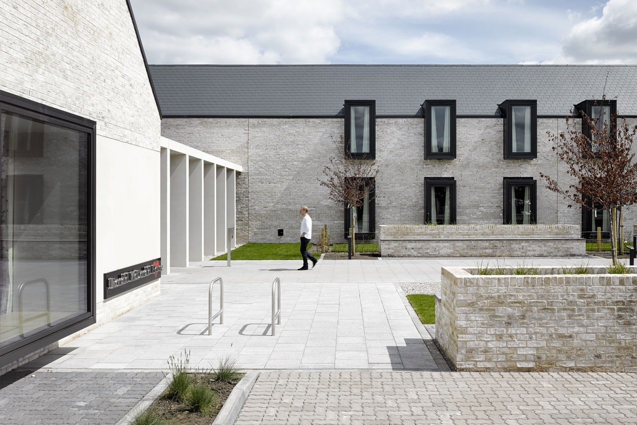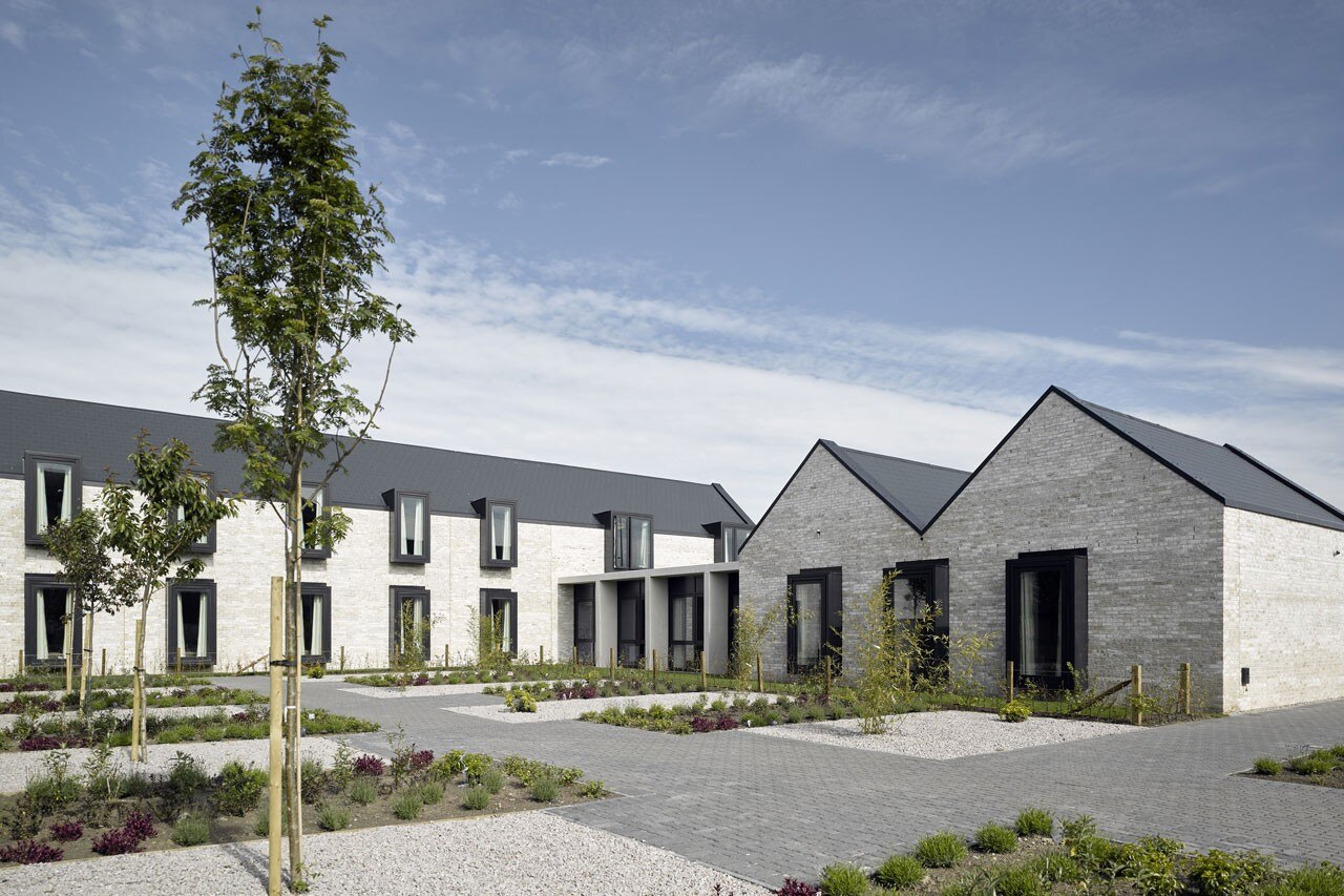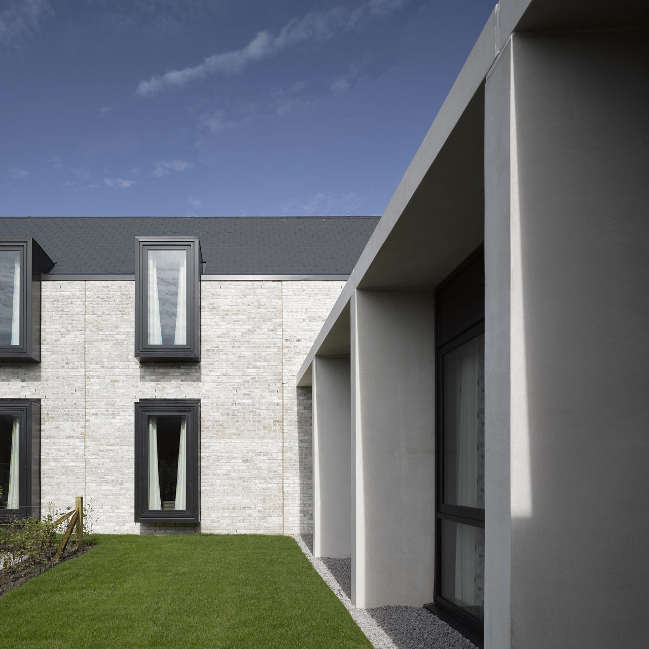 A calm, domestic feel has been achieved by carefully considered massing and use of rustic white brick. The interior spaces use high-quality materials, finishes and fixtures throughout, and ceilings follow the external roofline to provide added drama to communal spaces such as the lounge, kitchen and children’s play area.