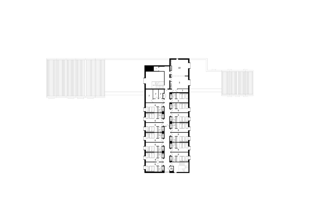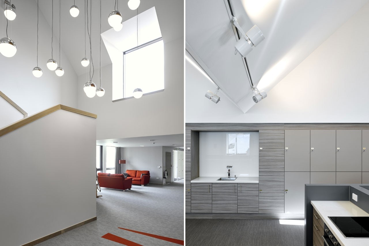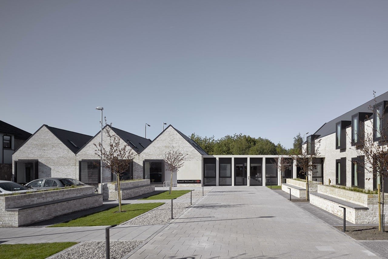 A calm, domestic feel has been achieved by carefully considered massing and use of rustic white brick. The interior spaces use high-quality materials, finishes and fixtures throughout, and ceilings follow the external roofline to provide added drama to communal spaces such as the lounge, kitchen and children’s play area.