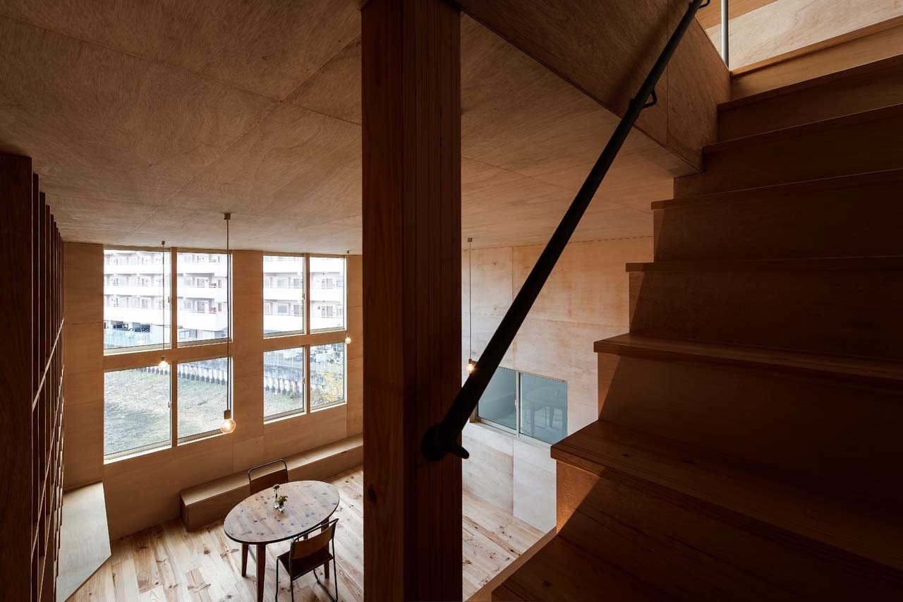 Built entirely with wood, the residence is minimal with the needed space spread throughout three layers. A living room on the second floor has the double ceiling height. A big window open on the south side faces a pond near the house. In this way, nature can be felt from the interior: it is a small, but abundantly sensitive house.