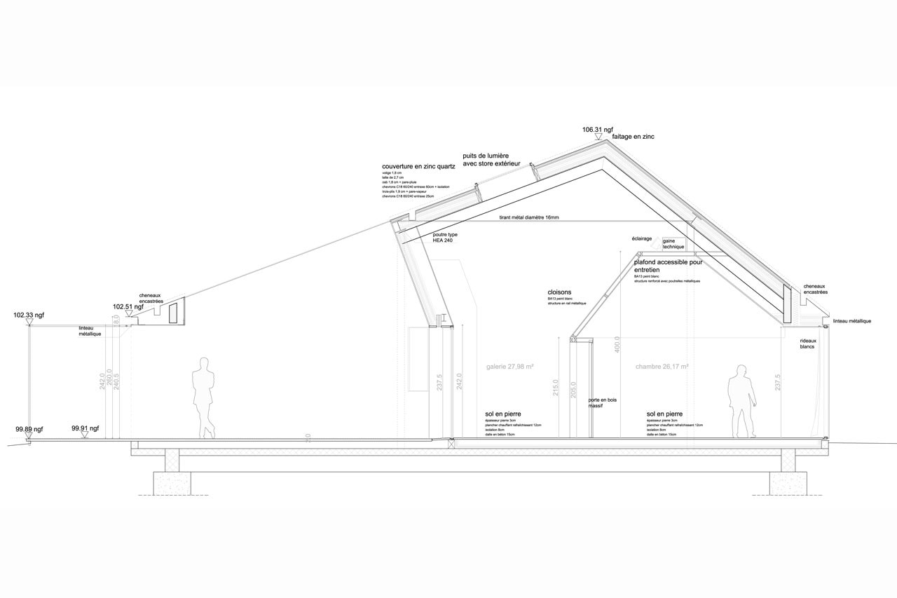 Marchi Architects, Chestnuts House, Auvergne, France. Section