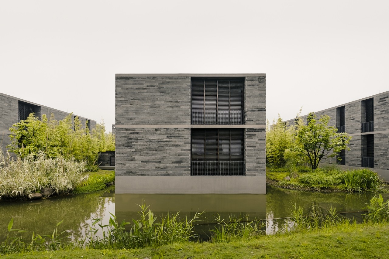 David Chipperfield’s residential development in the outskirts of Hangzhou, a composition of dark stone volumes surrounded by a water garden, integrates the atmosphere of this place and its omnipresent relationship between landscape, architecture, and water.