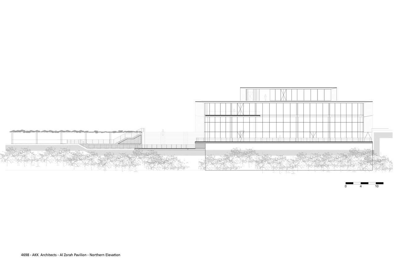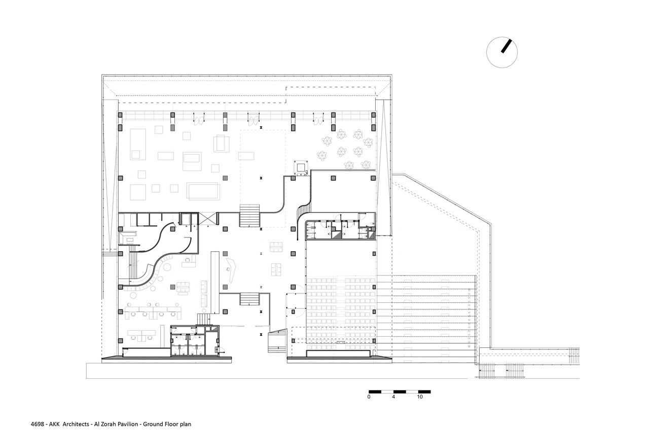 The first floor hosts the administrative spaces destined to Al Zorah Company senior management’s offices and marketing activities. The 985 sqm include four private offices, an open space area and three meeting rooms, beyond a VIP area. The car parking is underground, sheltered with a green layer with benefits due to reduced pollution, and energy savings.