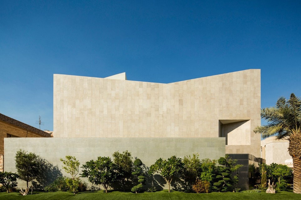A large lattice develops into the volume and creates a welcoming area, in the public ground level. This skin encloses the guest living room which is surrounded by gardens and terraces. Away from any uncomfortable view, at this same level, the family shares their own private luminous oasis.