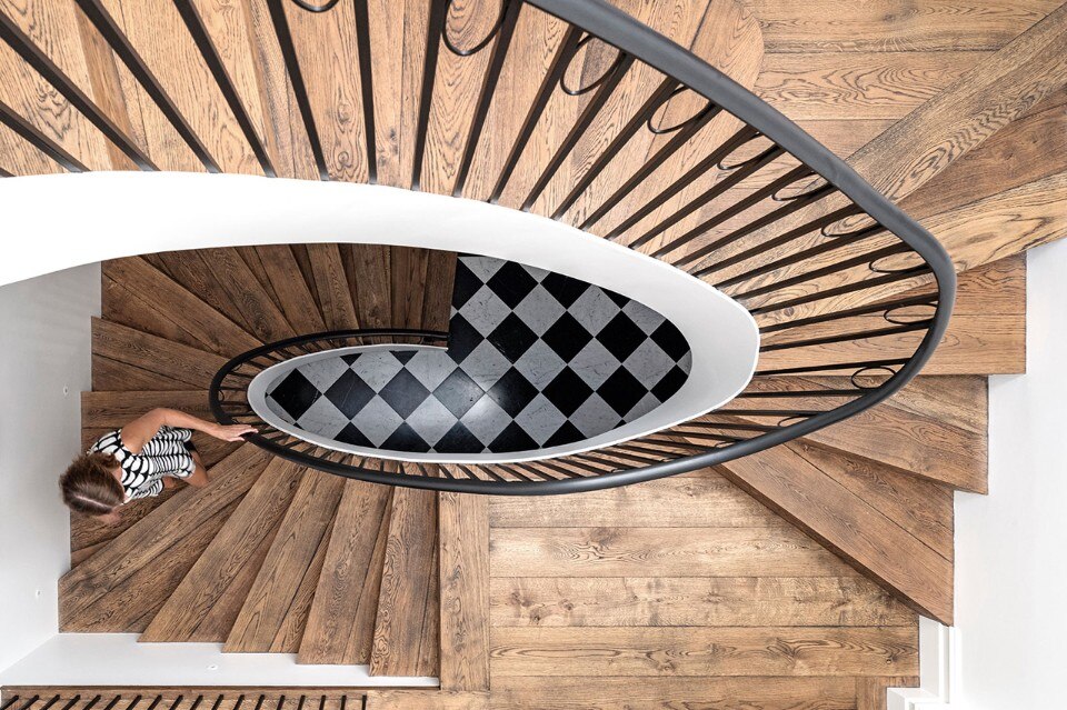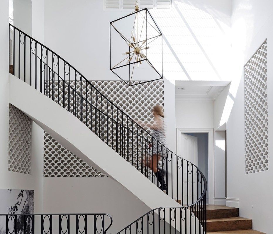 Luigi Rosselli Architects, Twin Peaks House, Darling Point, Australia. Right: through this archway the stair pierces the old courtyard wall and enters the attic space