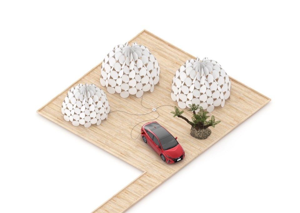 The two last projects go back to reconsider alternative uses for future technologies. The first of them a collaboration between a car maker and Kengo Kuma, optimizing the use of green energy generated by a hybrid car to plug tent structures. The other teamed by a culture infrastructure company and Hara Design Institute, considering wireless connection as the “virtual roof” where families are today interconnected.