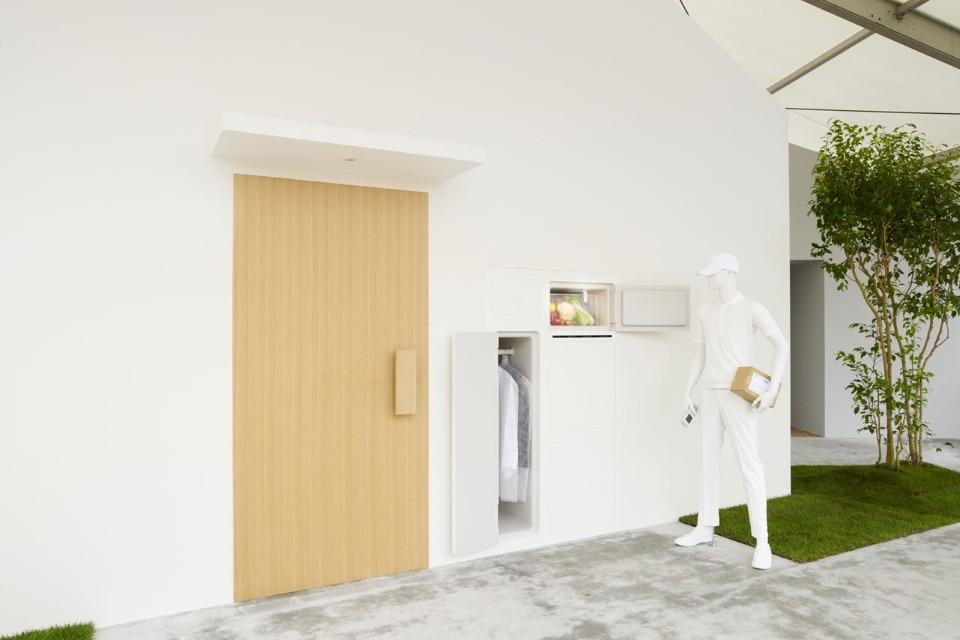 The first house, by a company whose business is related mainly to transport logistics, teamed with product designer Fumie Shibata to envision new possibilities of delivering. Their proposal was an exposed refrigerator accessible from the outside, extending the network of delivery services not only from door to door but from fridge to fridge.
