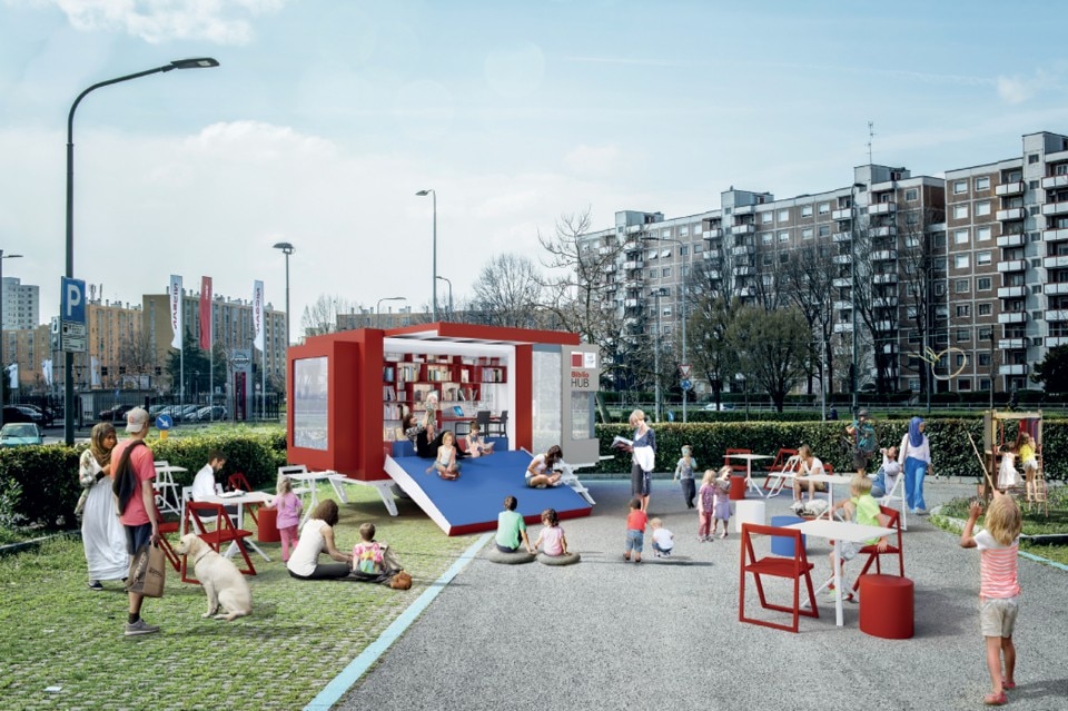 The three projects still in need of funds are Campo Libero by Antonio Scarponi with Libera: a structure for legal matters, dedicated to civic thought, to be located in an area confiscated by the Mafia; BiblioHub by Alterstudio Partners with the Associazione Italiana Biblioteche: a mobile library that is also a place for socialisation; and Unità Monitoraggio Ambientale by Arcò with Legambiente: an awareness-raising centre for the environment.