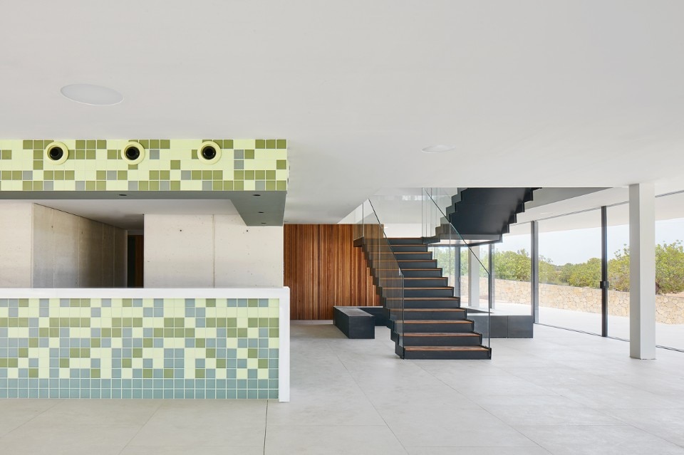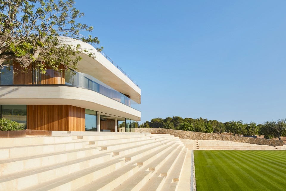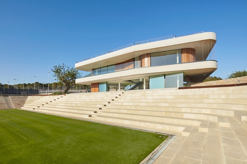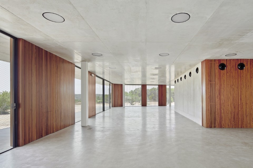 The strong natural context defines the concept of the project. The topography of the land demands a terracing strategy in order to place the different courts at different levels following the slope of the hill. The building itself is therefore conceived as a continuation of that terracing: two floating terraces, white concrete slabs, overlooking the tennis compound. By positioning the building at the highest point of the land, it works as the last terrace of the project and as a great viewpoint, balcony to the rest of the plot, specially to the centre court, the heart of the project.