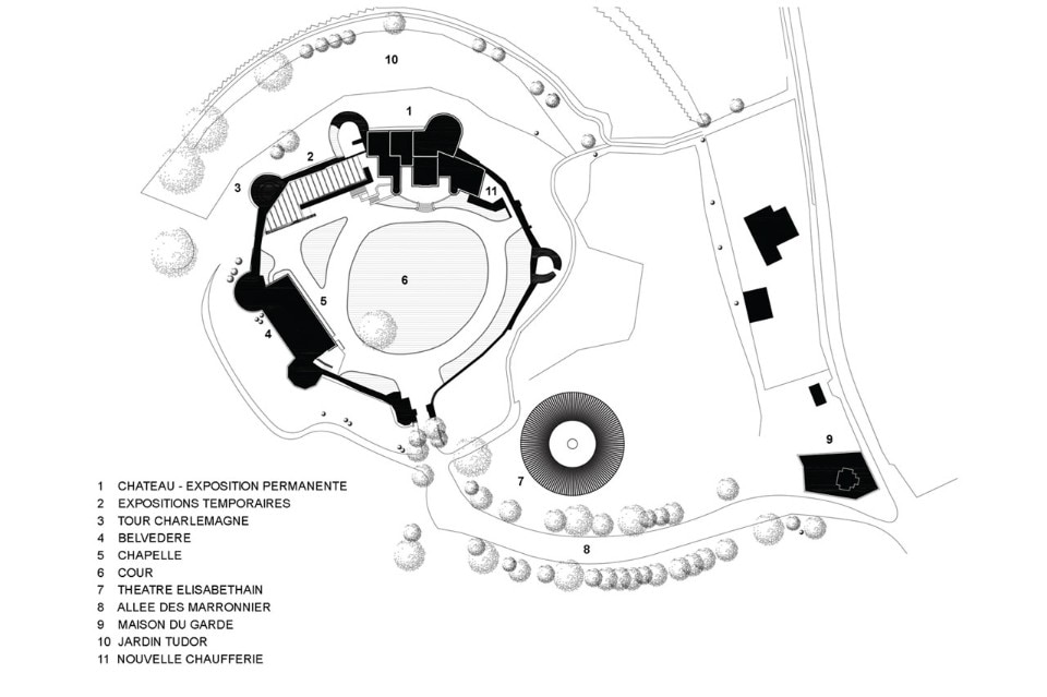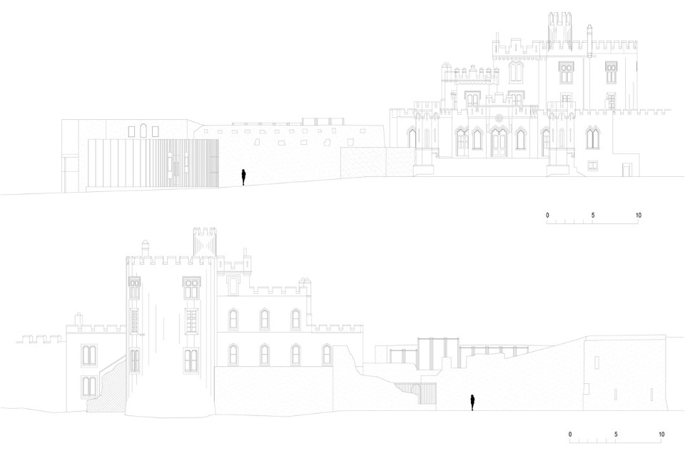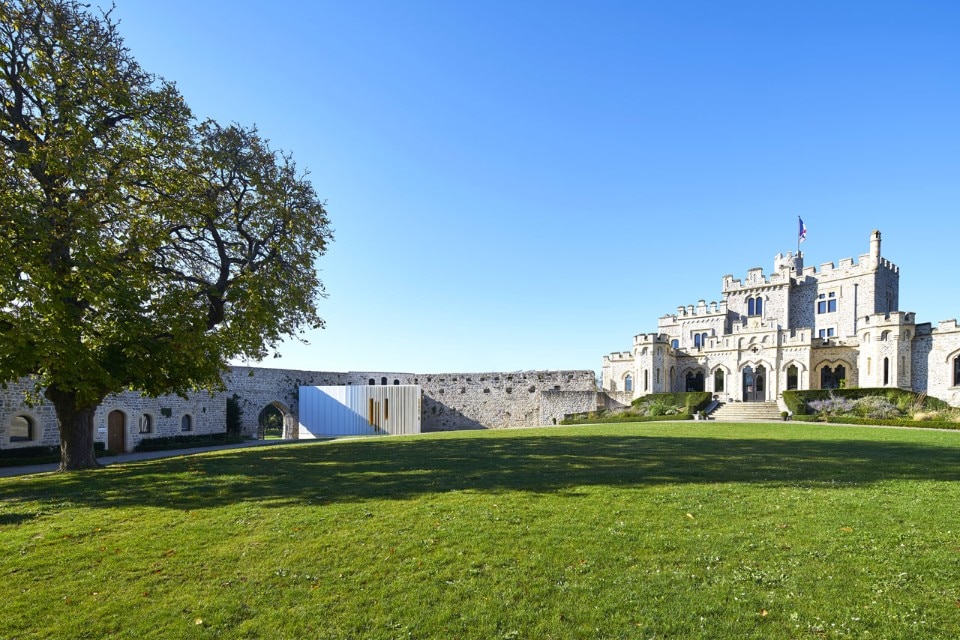 Silvana Bartoli + Celine Medina: Although we worked with maximum respect for the existing castle, we did not want to design something that apologised for being there. We think that respect should include the story of the past, but also of today and the future. We wanted our project’s relation to the castle and the landscape to be a connecting element between the existing natural quality and the production of a new story in common that comprises elements from the past and from today. Only the need for a new use of the site, foreseen in the design programme, authorised the grafting of extraneous elements onto the neo-Tudor castle. With measure, we differentiated the ergonomics of the existing exposition rooms, and brought the spaces of the château required by the client to offer surroundings that are more appropriate to contemporary times. The clear identity of the modern parts needed to combine with the old part naturally, not forcefully. Through the use of materials, proportions and light, we wanted to establish a dialogue between our architecture and the locus.