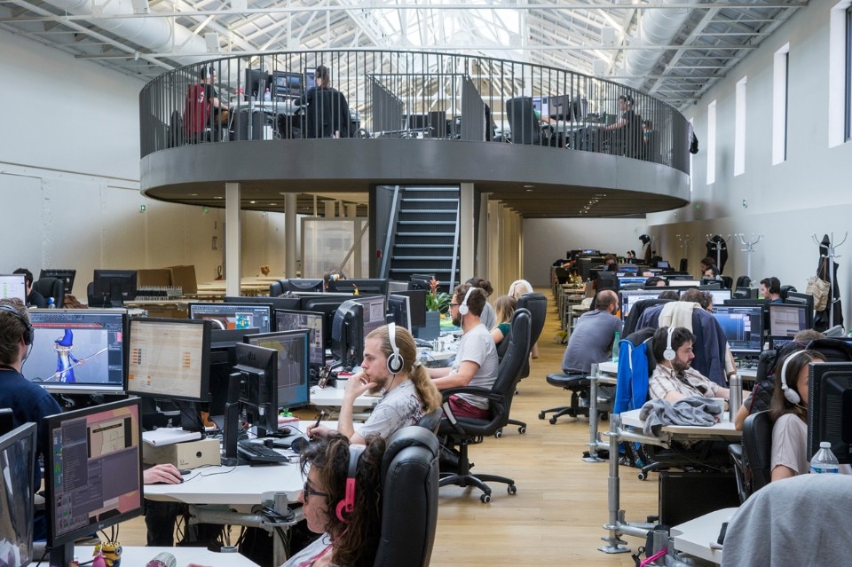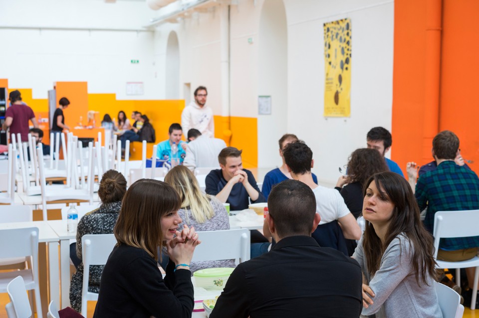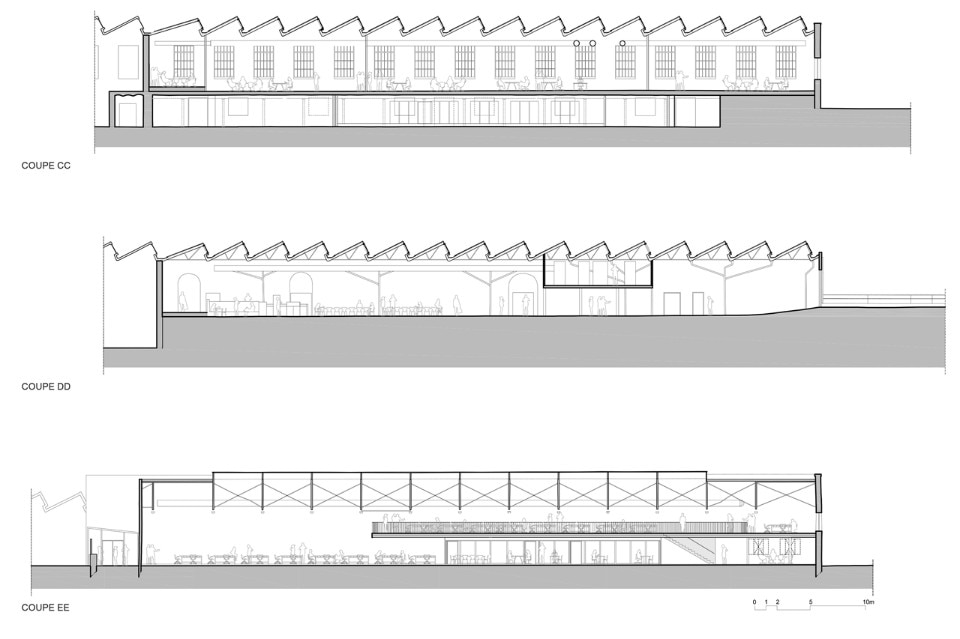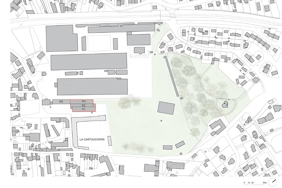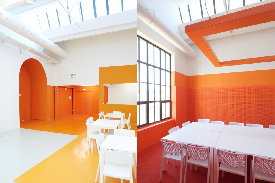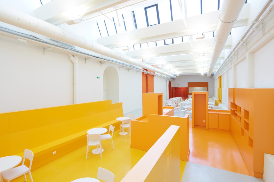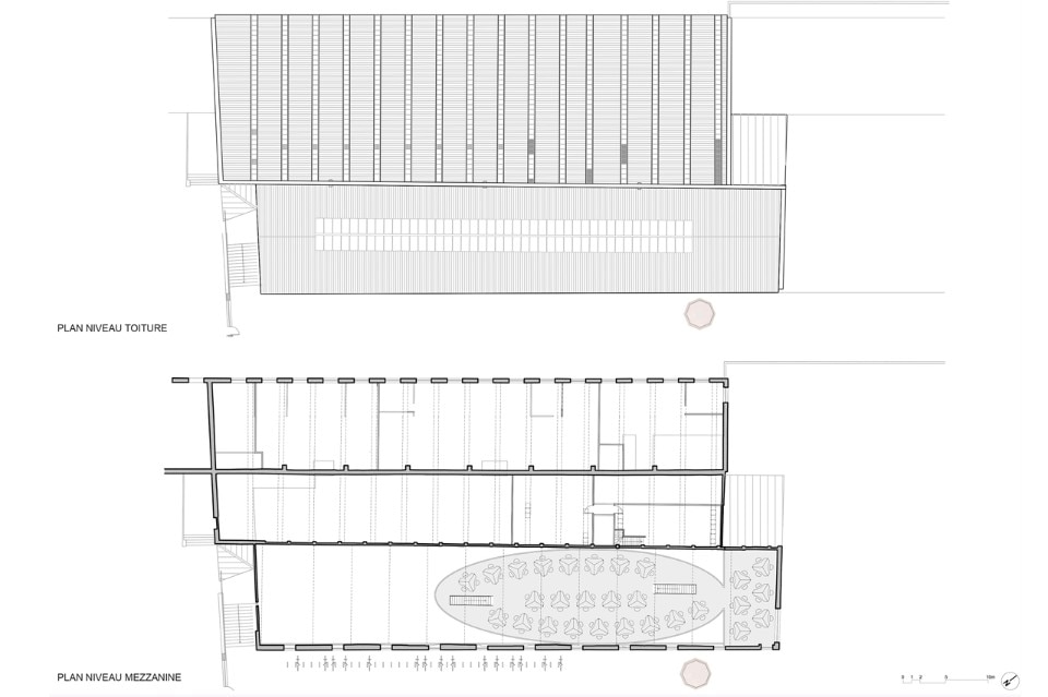 The first phase of the work led by the town and the architect Philippe Prost allowed for the rehabilitation of the principal building and of the courtyard. H2o continued the process readapting the “R Buildings”, to create working places for the Image Center of the Southern Rhône-Alpes. The architects preserved the qualities inherent to the existing buildings which are modest yet efficient: a spatial generosity bathed throughout by natural light, a repetitive and simple constructive system. The central hall, well lit but without a view, is the living heart of the project, a meeting space for the different companies working there.