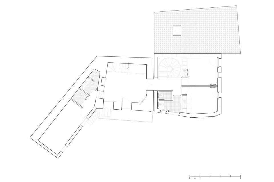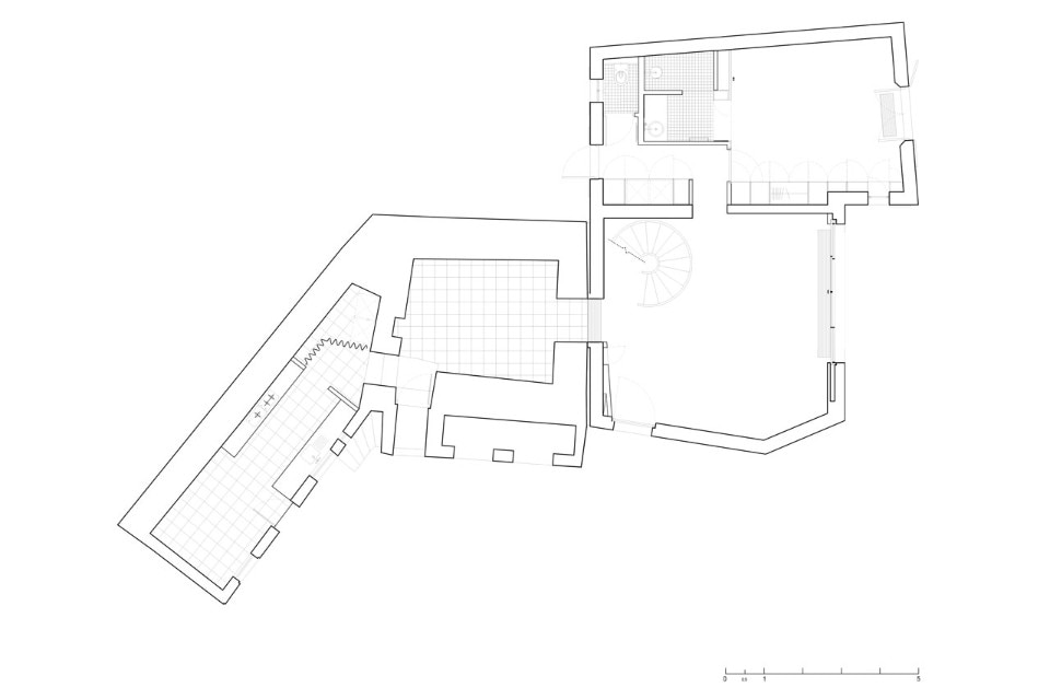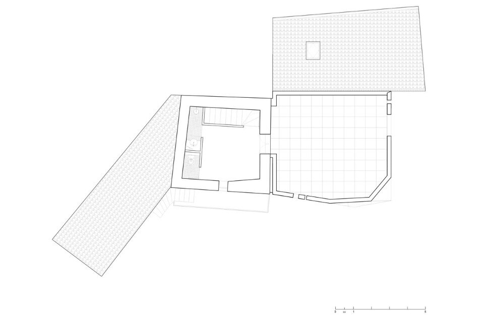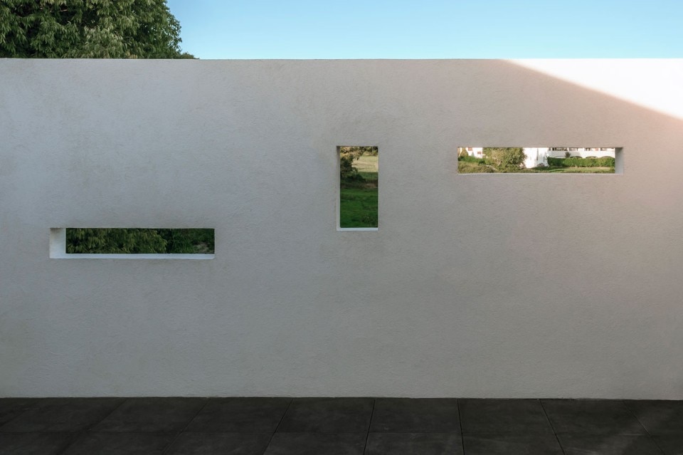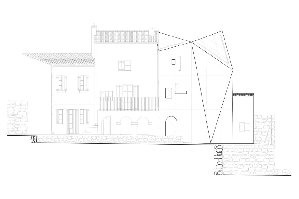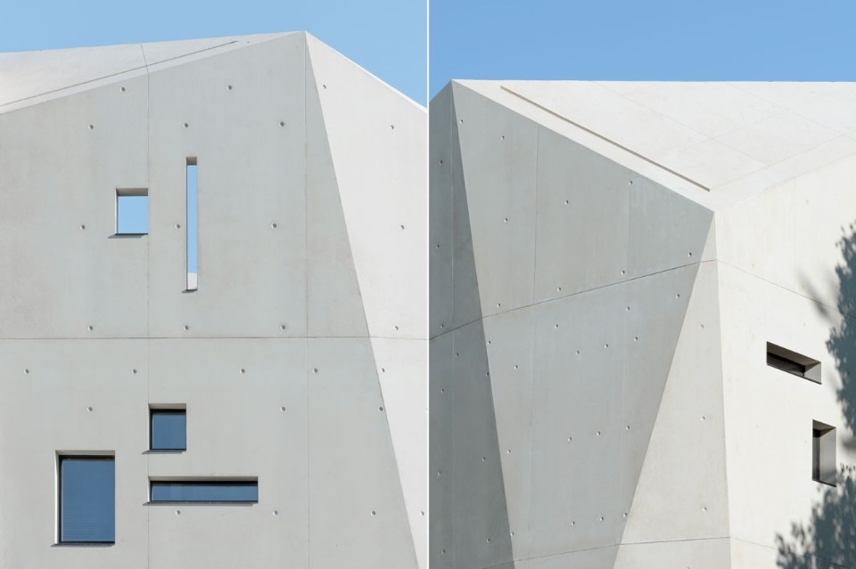 A monolithic and sculptural concrete volume rises from this landscape of greenery and limestone, resonating with the genie of this place, a former quarry. This volume has been designed to allow the interplay of light and shadow to reveal its facetted form and to assert its presence and contemporary look without negating its kinship with the house it adjoins. Narrow openings similar to the farmhouses of the Usège region, are positioned on the east and south facades to protect the interior from intense heat in summer and cold in winter.