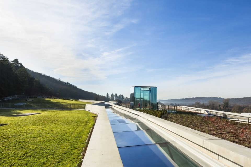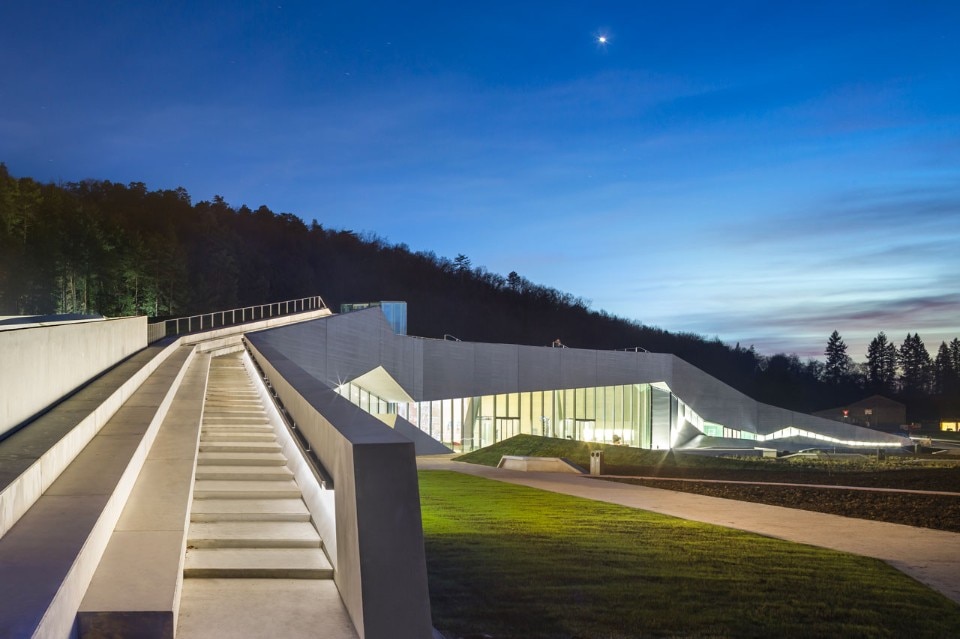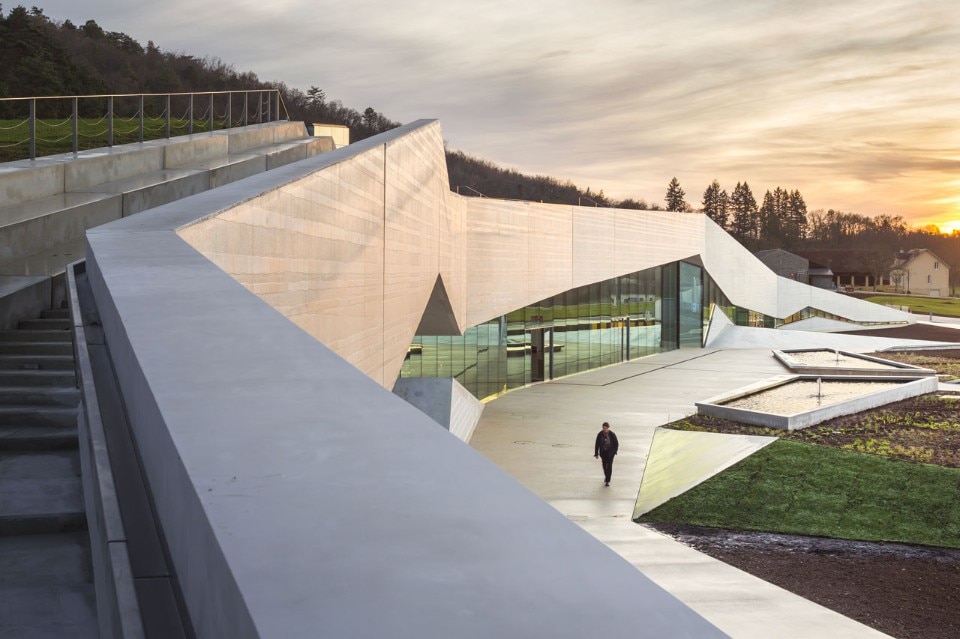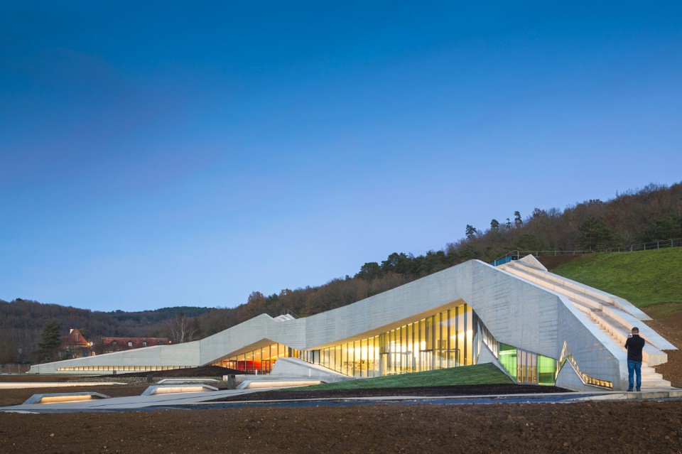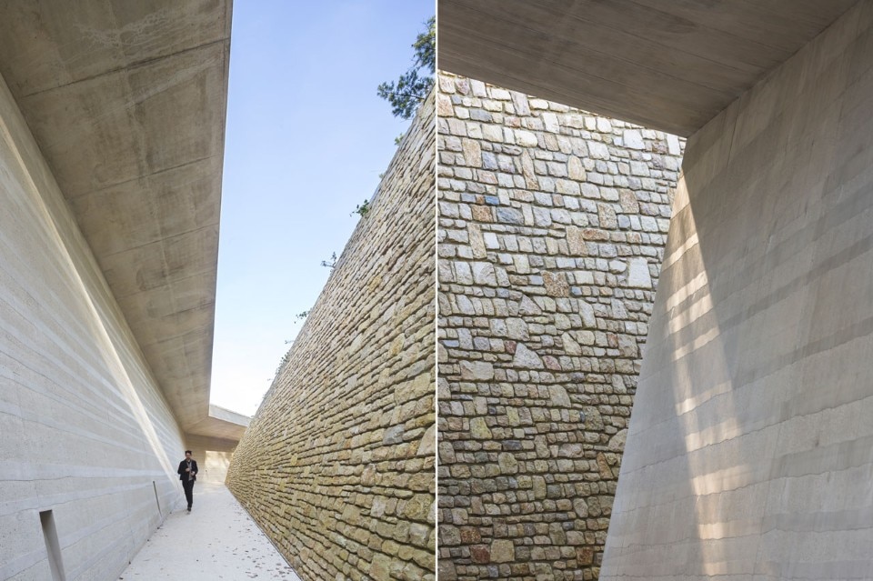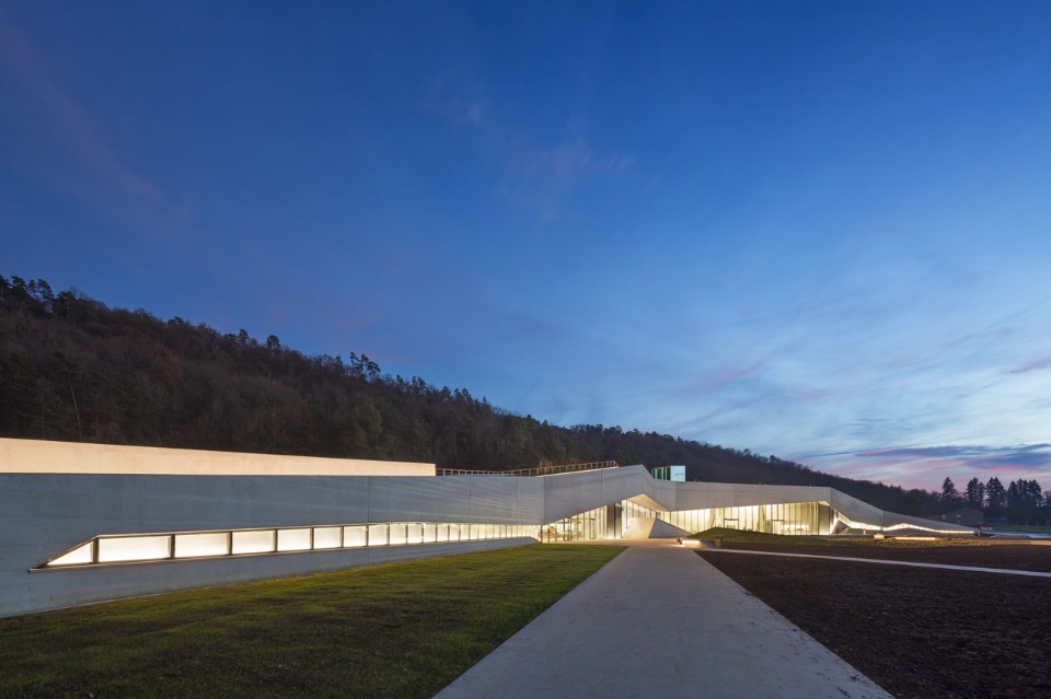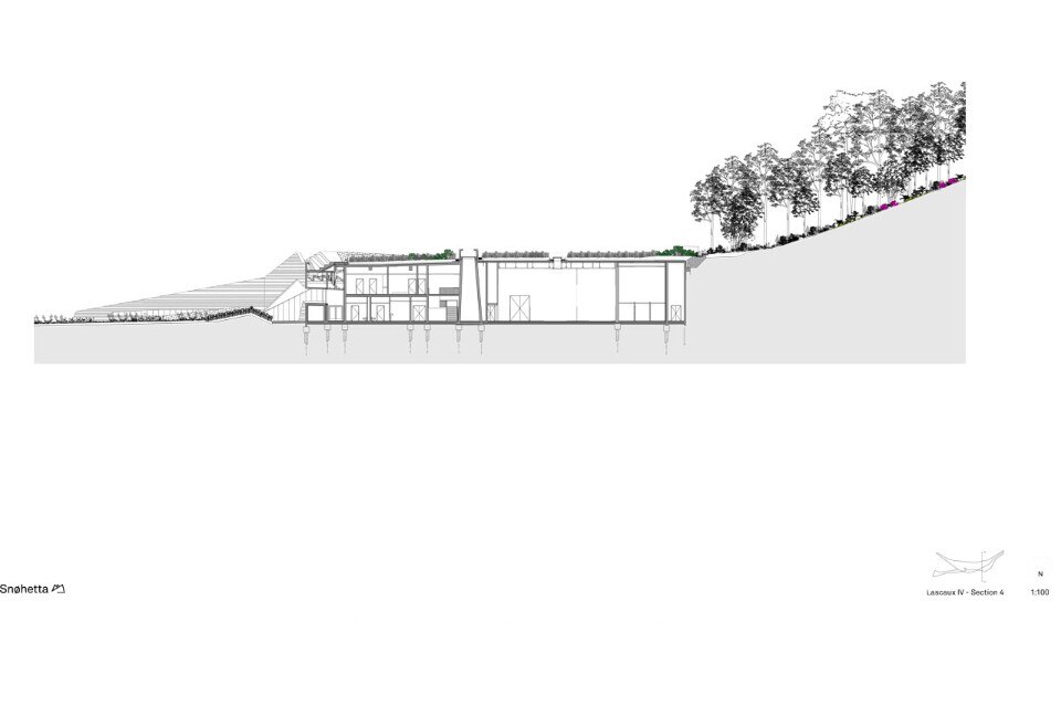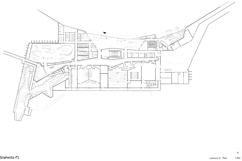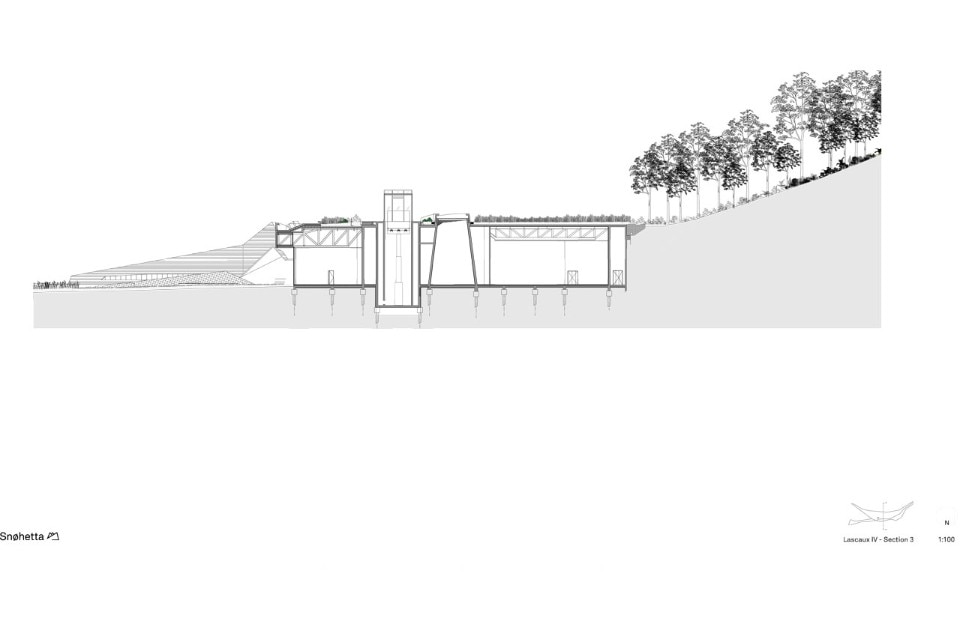 The new Lascaux IV Caves Museum is situated at the intersection of two unique landscapes, between a densely-forested, protected hillside and the agricultural Vézère Valley. Snøhetta’s design conceives the museum as a fine cut in the landscape, inviting visitors into a curious world of prehistory. By framing the experience of the cave replica in contemporary design, the approach counters the potential trap of artifice: the materiality and geometry of the approach allows the visitor to understand that they are in the presence of a reproduction, without distracting from the power of its impact. The form and materiality of the museum have a monolithic, sober expression, speaking to the surrounding nature and the massive rock formations embedded in the hill, with a new public, agricultural landscape unfolding around it.