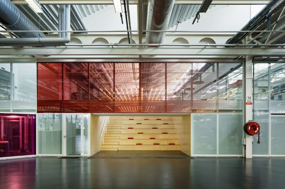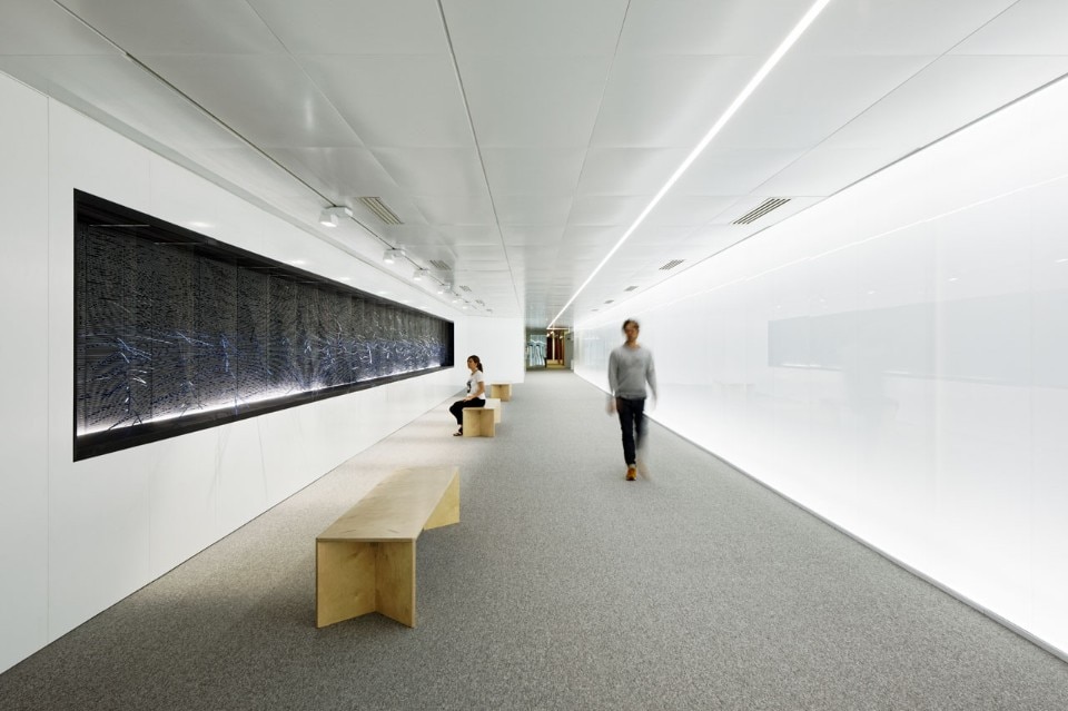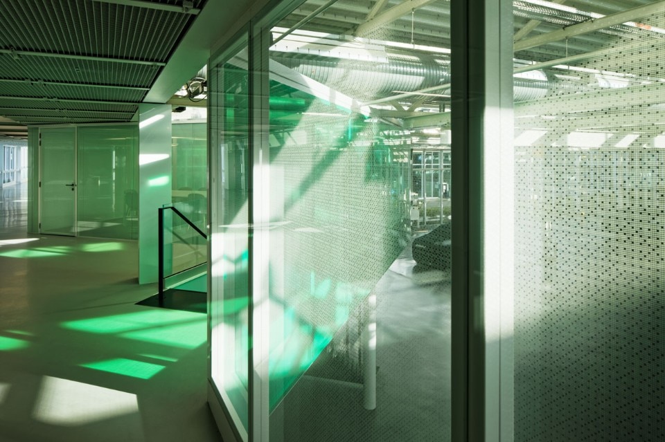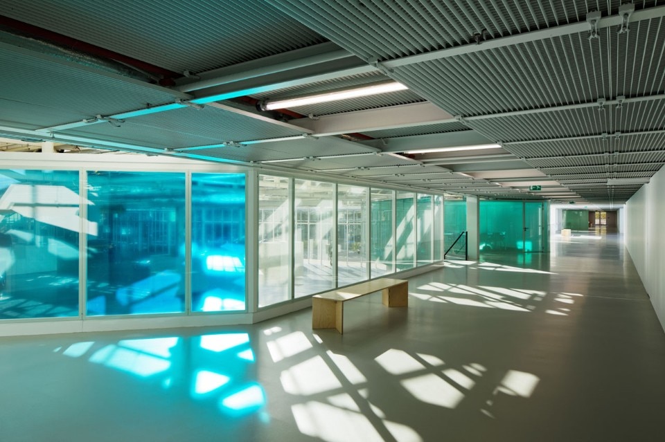 The choice of acid colours also alludes to artworks in the collection, like the ones by Victor Vasarely, the French-Hungarian abstract painter, after whom one of the large meeting rooms is named. The final result is paradoxical.