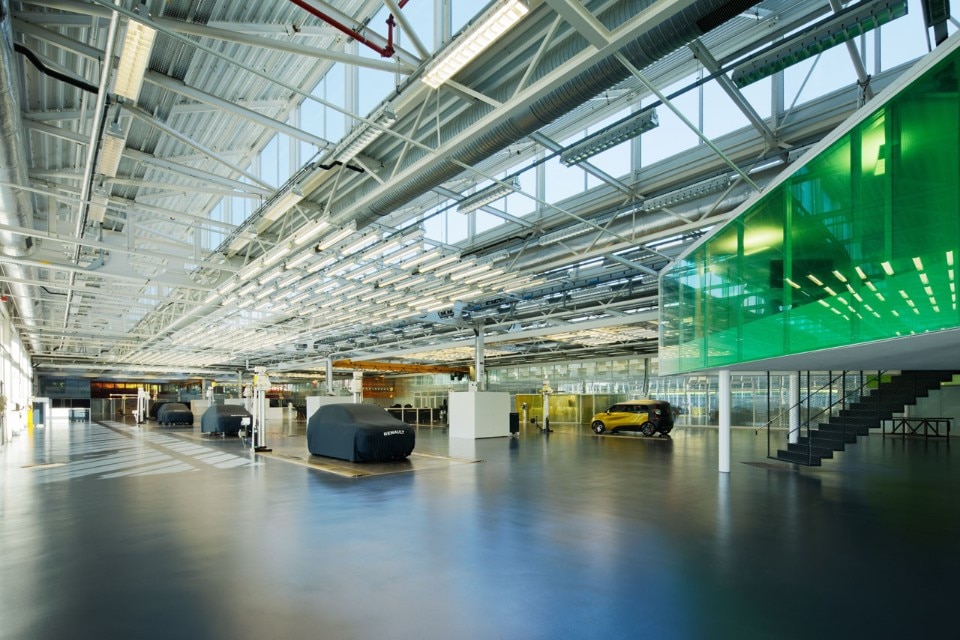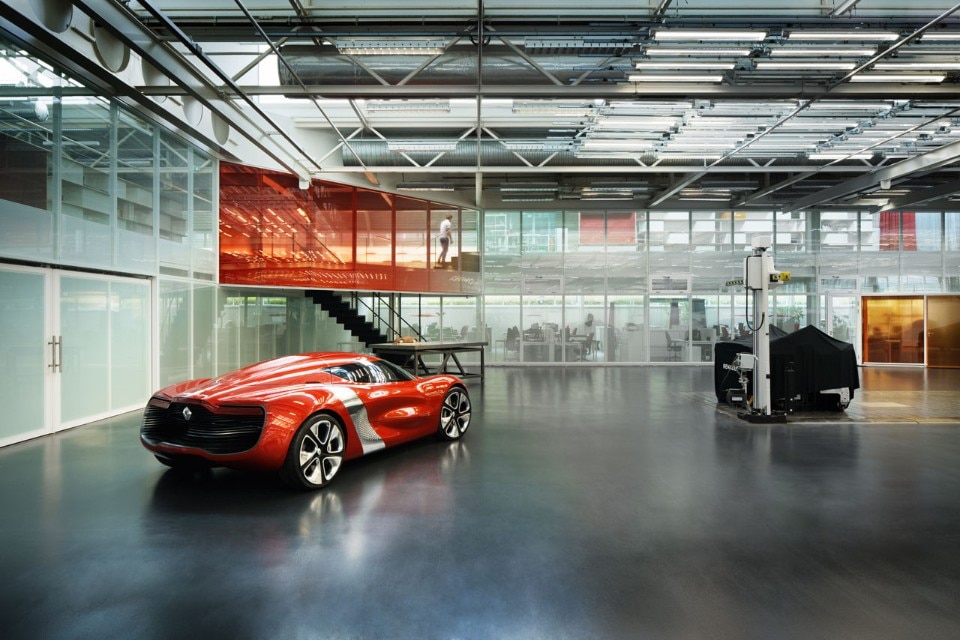 Located on what used to be the runway of Caudron Renault airfield, the Technocentre was built twenty years ago by the Valode et Pistre architecture office. They went for maximum brightness, endowing it with many green courts, with rather contrived routes passing through them, and markedly aloof interiors. The Design Centre in this huge complex now also houses official reception rooms, offices, meeting rooms, lecture theatres and a collection of modern art. The Technocentre is not a production facility, but Renault’s R&D (Research & Development) department, where the models of tomorrow are invented today. The prototypes in the workshop are models made out of clay, hence modelled like true sculptures, though on a technical basis. There is always a great deal of bustle going on inside and around the big complex.