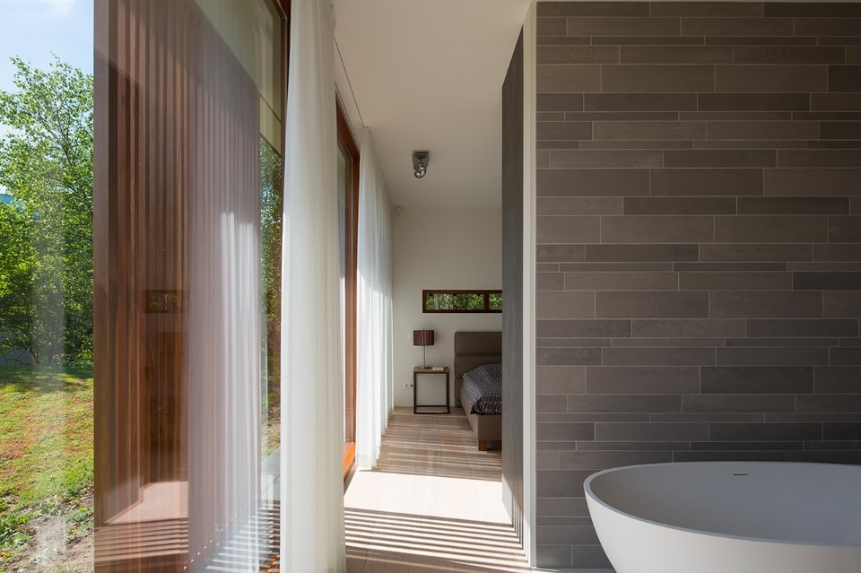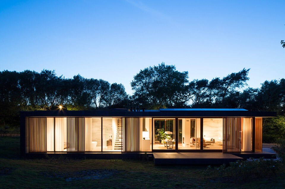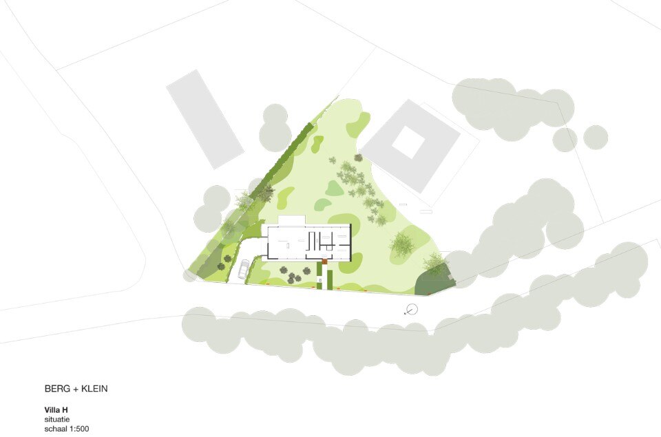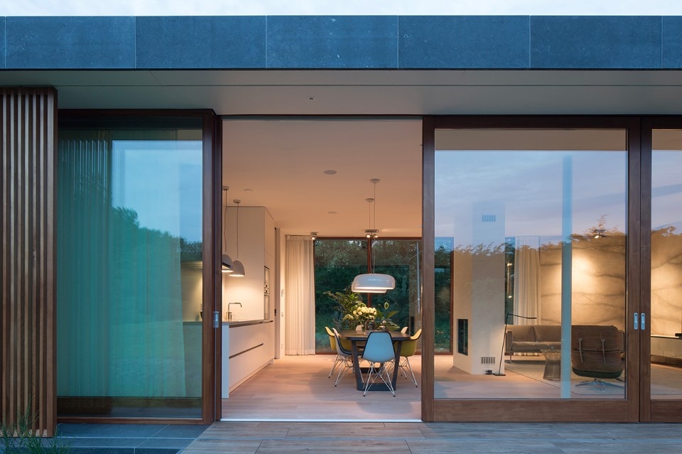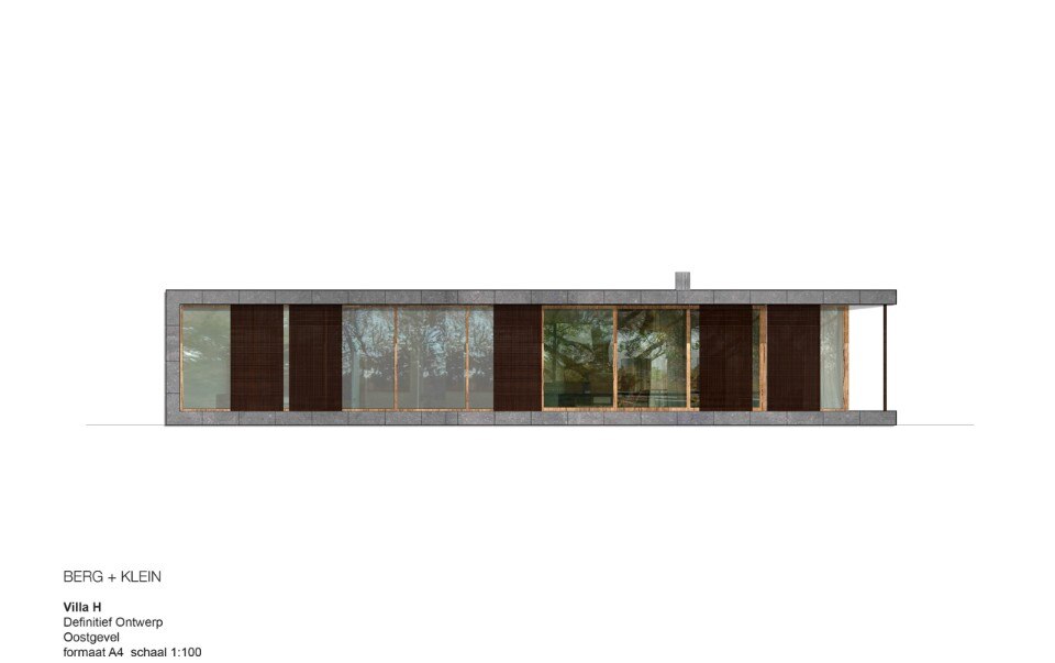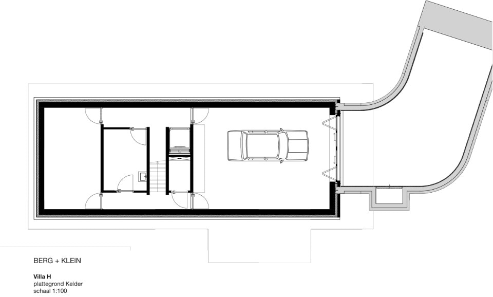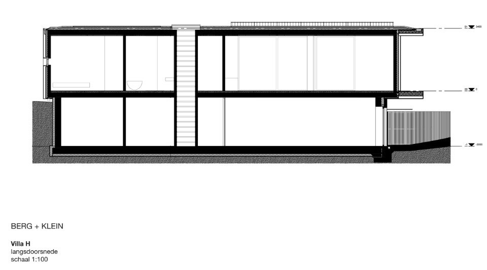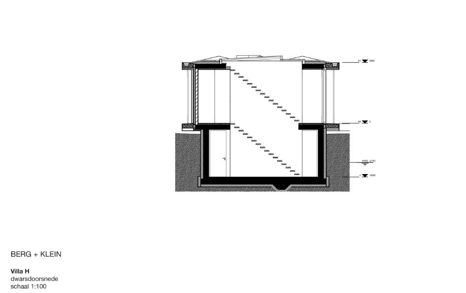 Berg + Klein designed a loft in the landscape in the dunes of the Hoek van Holland, Rotterdam, the Netherlands. The basic idea of Villa H was to have an open floor plan, a view and limited but very specific spaces. Villa H is a horizontal design with one vertical element, a staircase in between two concrete walls that links the sous-terrain, the bel etage and the rooftop terrace. Important for the design are the cantilevered edges of the house that give it a horizontal articulation and that frame the landscape between the floor and the ceiling when you look from the inside out.