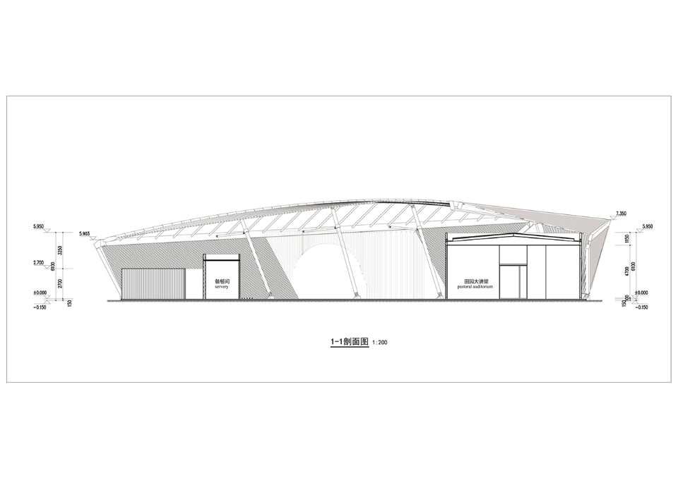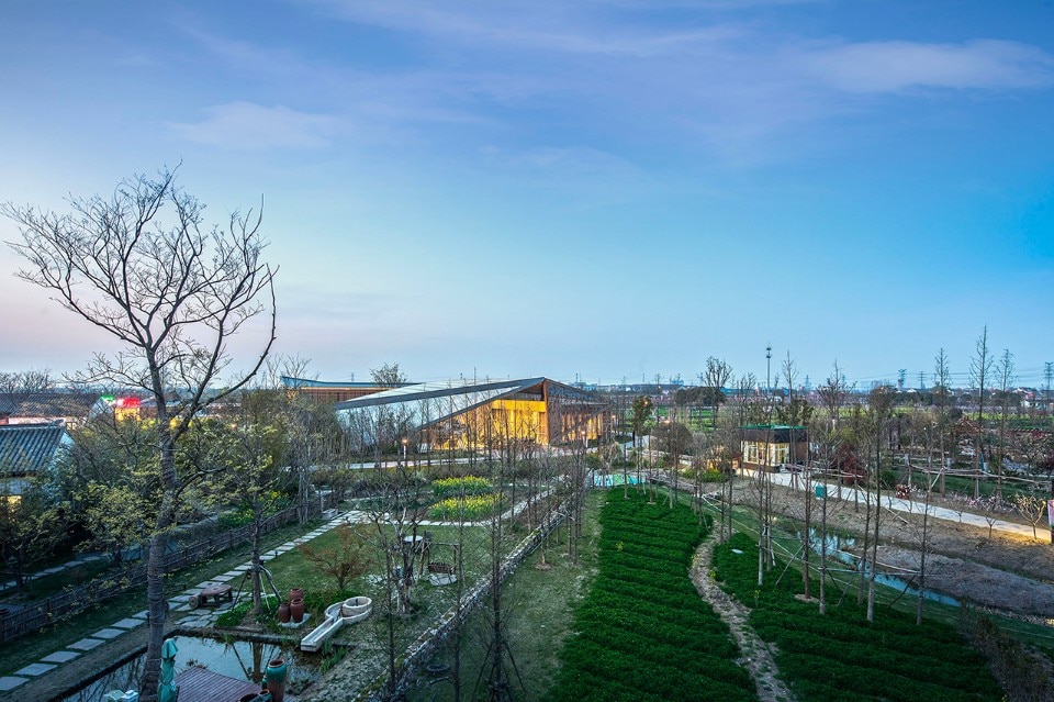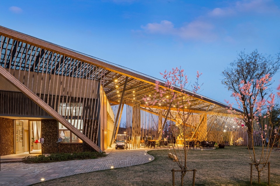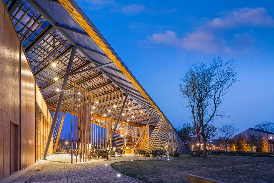 The Wuxi East Countryside is a cultural and tourist park that show the rural feelings and life. For the project, an ancient village was renovated and several new buildings were built, based on the rural concept. The Lecture Hall stands at the heart of the park, perfectly integrated into the pastoral scenery, almost like growing naturally from within. Composed by three distinctive areas, the venue’s indoors, the outdoors recreation area and an extension towards a vast green landscape; the construction covers an area of 1,618 square meters.