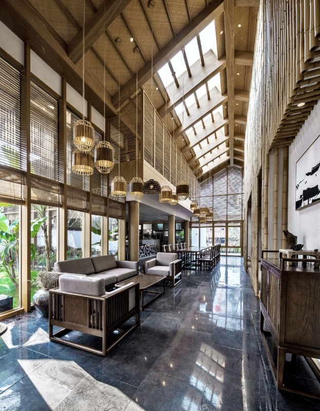 The Brick kiln cultural museum was built along the waterfront. The ground floor is mainly planned as light dining area, while the first floor contains brick-cultural exhibition area, a large meeting room and other functional spaces where people can relax. The original architectural style has been preserved and re-organized in a multifunctional space. The cultural center serves as a hub for local makers to meet and organize training classes, boosting the local rural development. The additional buildings feature Jiangnan elements, brick solutions and the classical Chinese garden displayed in a contemporary way. Among the materials used we can find bamboo, steel frames, local bricks ( ancient gold bricks and red bricks) and wooden structures.