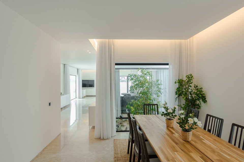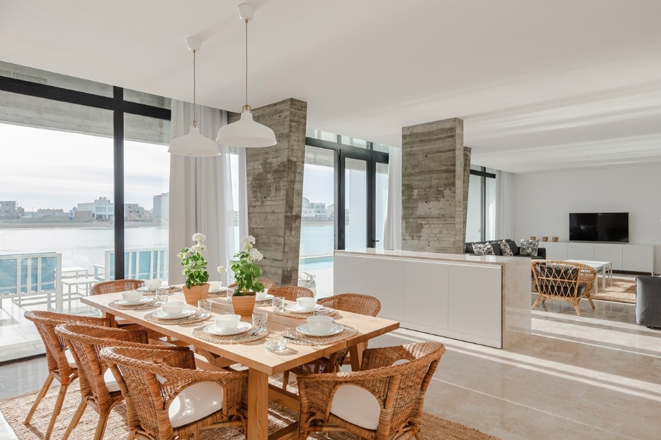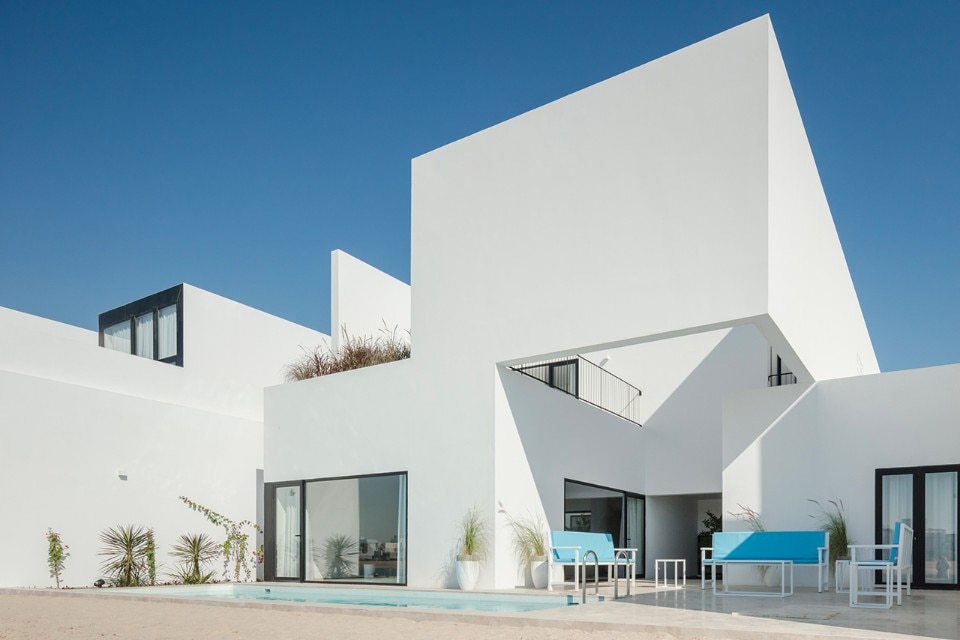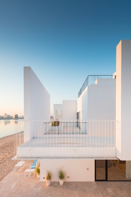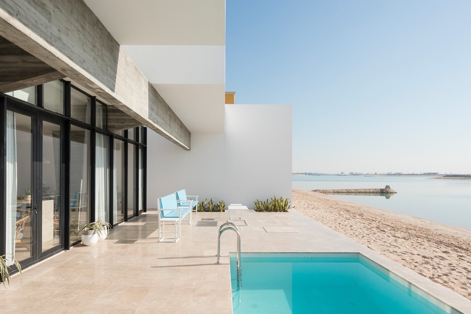 The project is located in Sabah Alahmed Alsabah Maritime City in the southern part of Kuwait. Developed to expand the length of available shoreline, the development brings the sea into the desert to create a series of canals that are anchored by several docks and marinas and activated by many other recreational activities. The five plots of the five residences sit on one of the inner canals overlooking the sea. The five villas, multiply the same organization concept in its basic. Despite the fact that the schematics are very similar, the volumetric composition present gentle variations that make each house unique its own way.