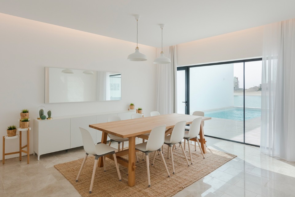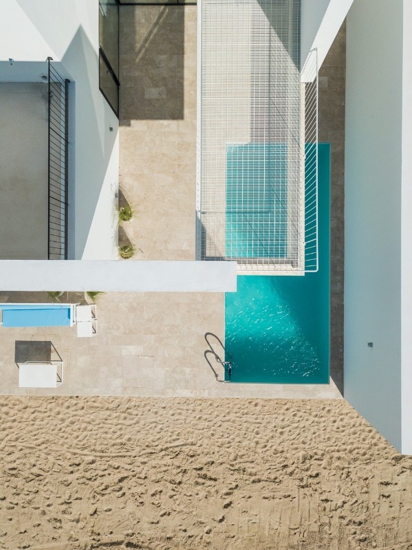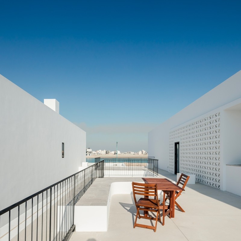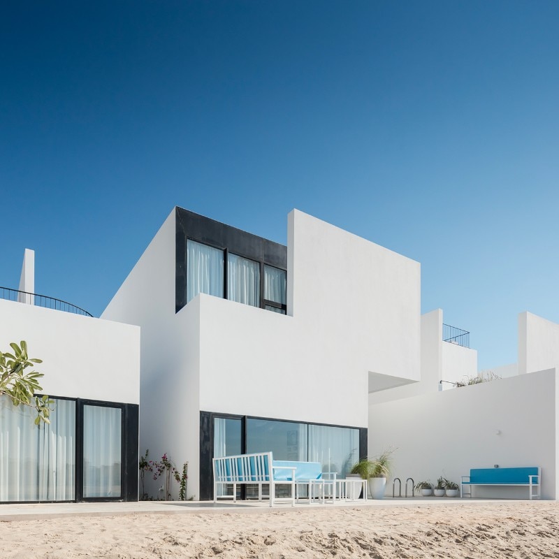 From an early stage, the idea was to develop a sense of unity, using the same architectural language of simple plane geometry, as well as the same basic concept and programmatic organization, resulting in a contemporary image of continuity and proportion, where slight harmonious variations guarantee complexity and diversity to this set of houses.The program involves an interpretation of the Kuwaiti way of life and its needs, relating the main daily living areas with the beach, exterior patios, gardens and pool areas. On the opposite edge of the plot, next to the entrance, stands a formal social gathering space for guests, the diwanyia. Upper floors are bounded by enveloping walls, partially perforated, that effectively guarantee the privacy requested by the program.