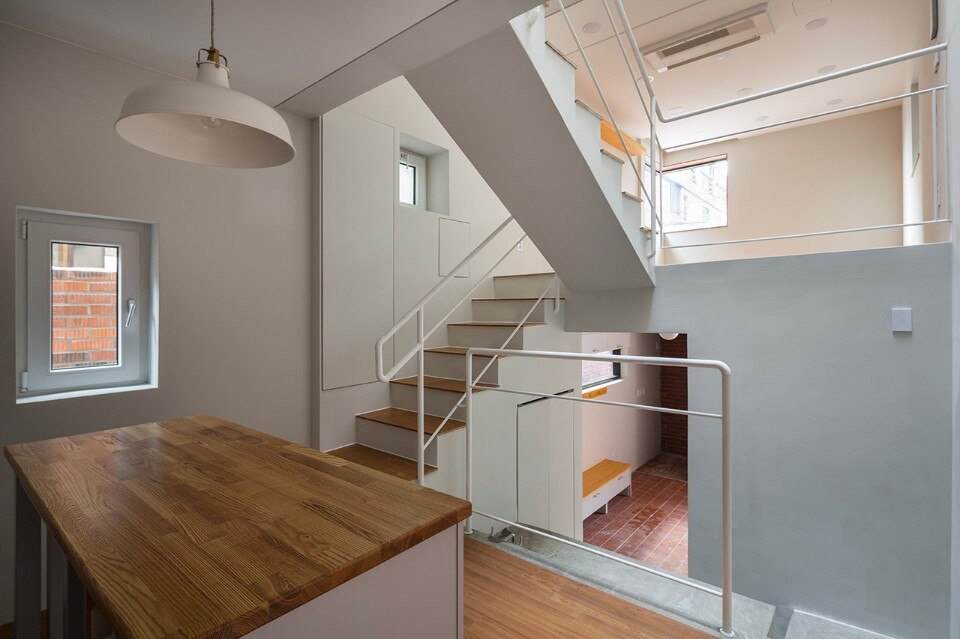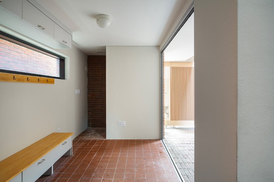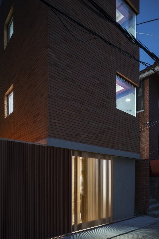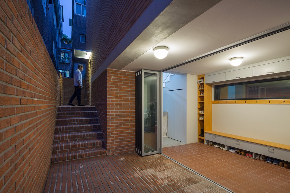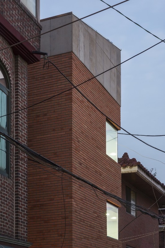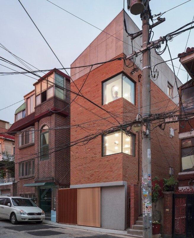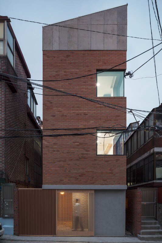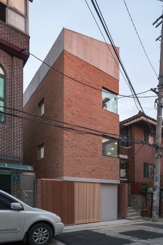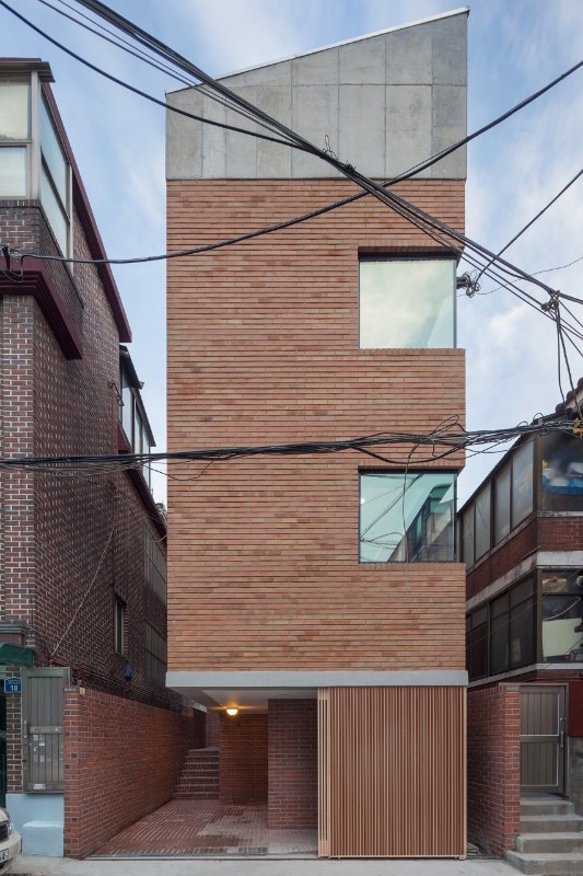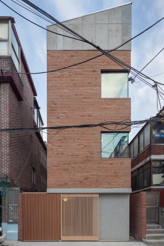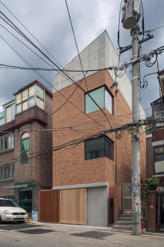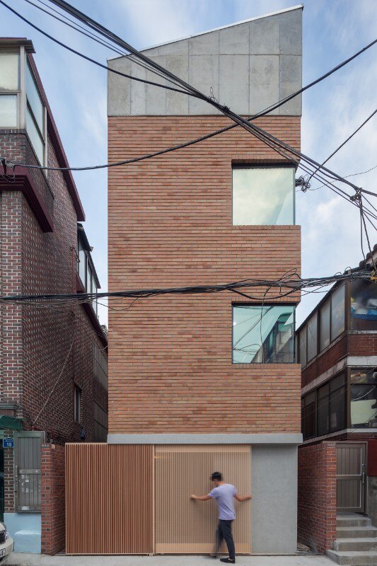 Korean studio Fhhh Friends has completed a brick house that stands in the middle of an old residential neighborhood in Seoul. For this small project, located in a dense context, architects mainly focused on spaces without a specific use.