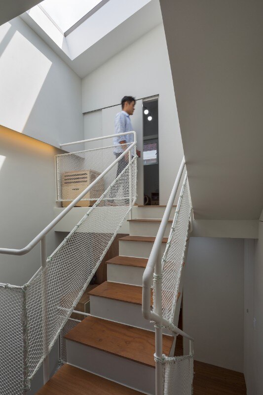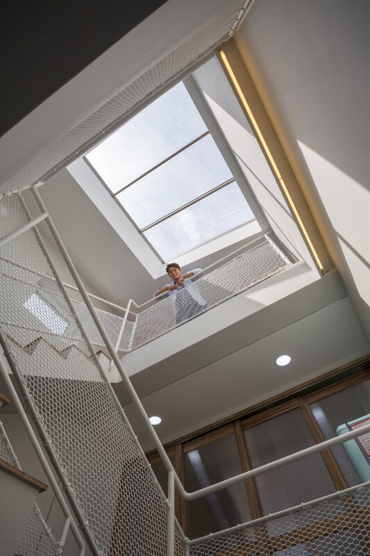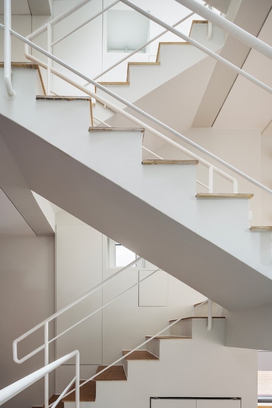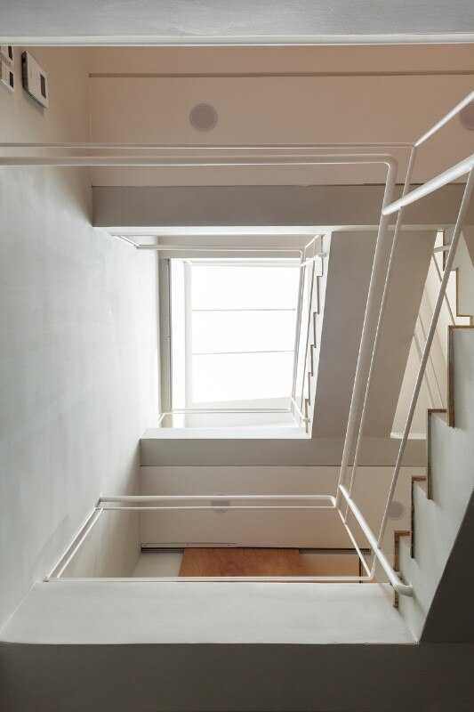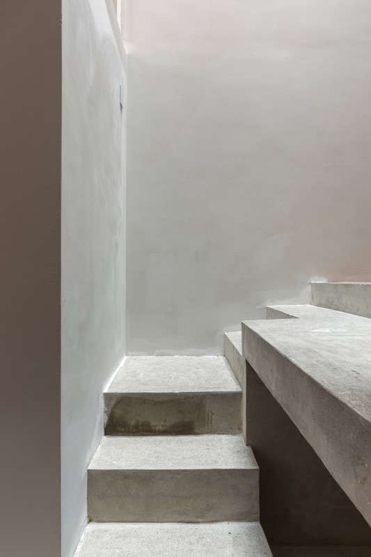Studio Fhhh Friends believes that the real value of everyday life has not a specific function. They conceived ambiguous spaces, like a small garden connected to the entrance. This generous space welcomes visitors and can house different kind of events. Enlightened by a wide skyfall, internal spaces get brighter by climbing up the stairs. The roof floor features an hidden terrace, with also a small opening for cats.
