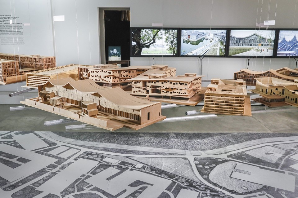 Set in the museum’s vast open space of 450 sqm, the exhibition focuses on the essence of Shu and Wenyu’s approach to architecture. An approach that “reinterprets the traditional Chinese knowhow in a contemporary language suffused with poetry”, explains Francine Fort, arc en rêve’s director and curator.