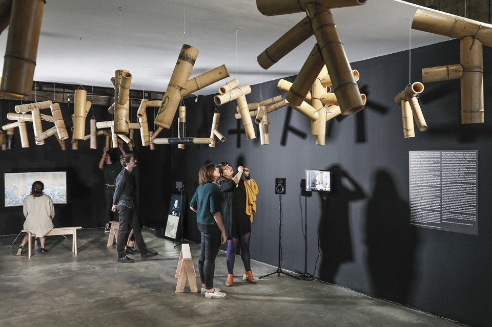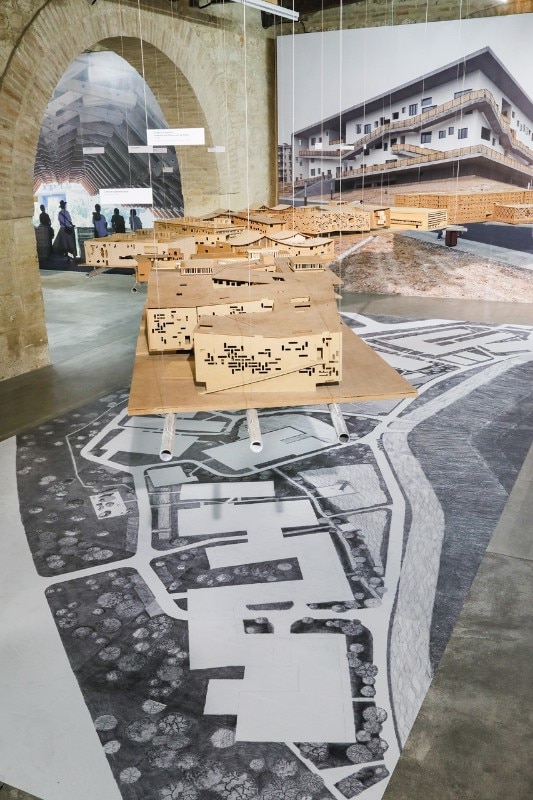 To express the dedication to their country’s craftsmanship, materiality, history and cultural identity, a series of materials and architectural elements - such as stones, bricks, concrete, bamboos, ceramics - were suspended to the ceiling of the gallery, thus creating an evocative and didactic frame that guides the visitors throughout the exhibition.