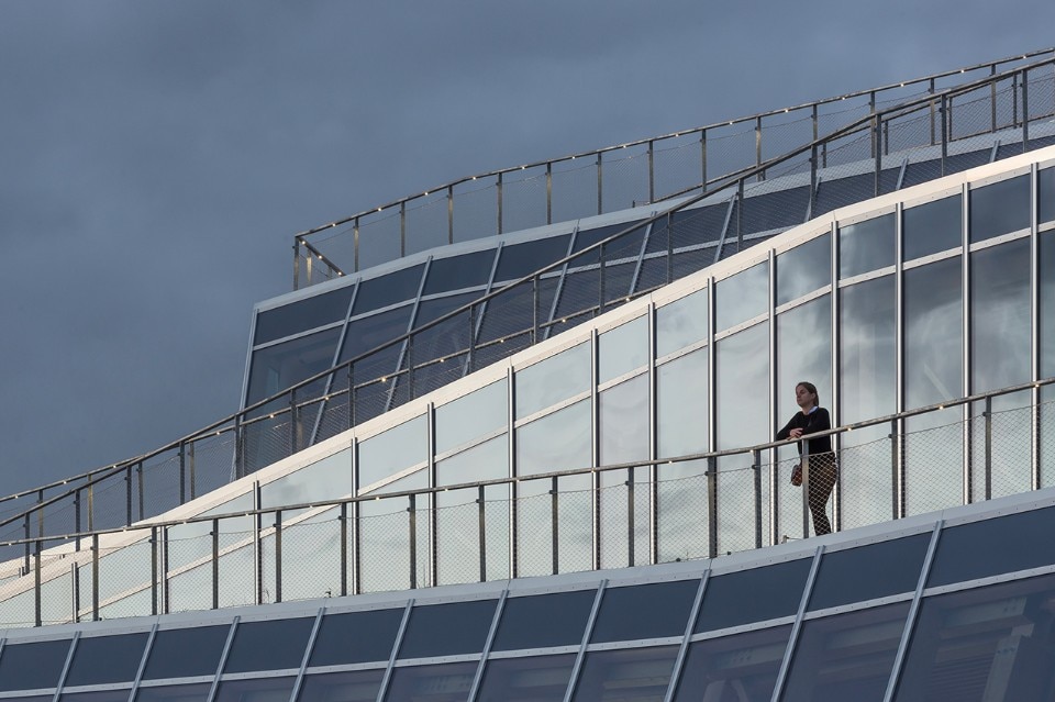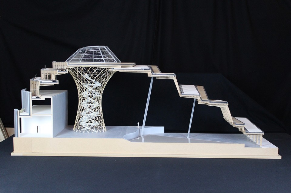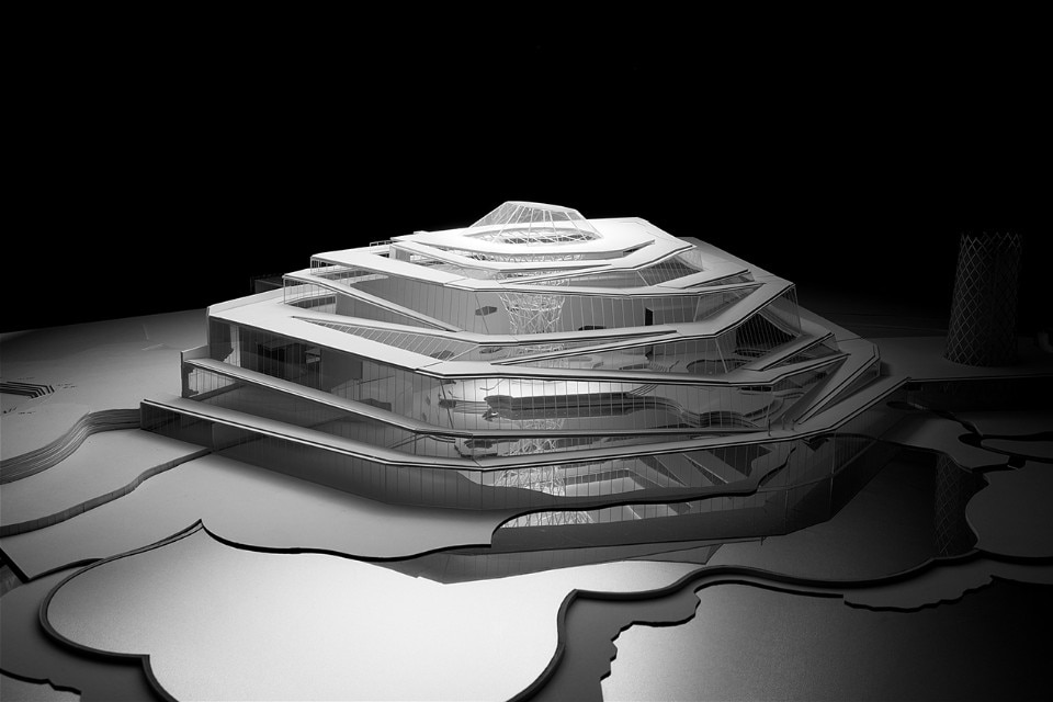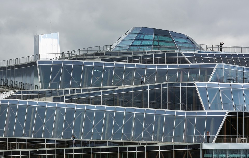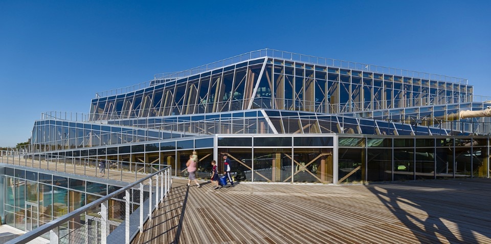 Jacques Ferrier Architecture has built an aquatic park that resembles an unfolding landscape. This new type of landmark is not an element which has been imposed on the topography, but an extension of the landscape itself, seeming to emerge from the lake. It is an aerial construction, layering hanging gardens, playing with water and transparency.