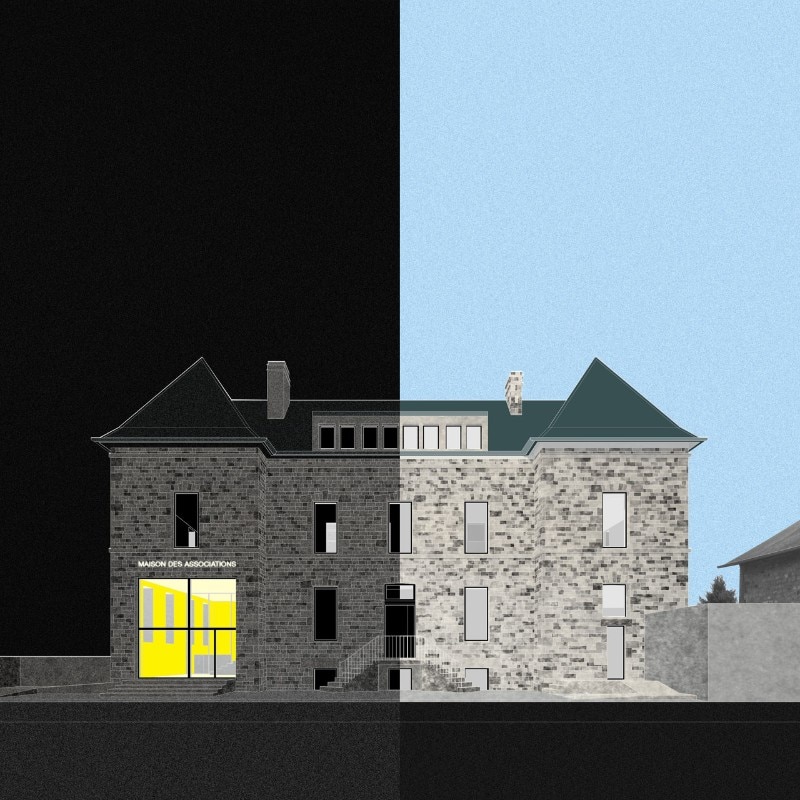 In presenting the local authorities with the project for the restructuring of an old building which will house the Nouvelle Maison des Associations in a small municipality in the North of France, a project which will be completed by the end of 2018, he proposed an ordered sequence of six interiors which are all connected through the repetition of a number of colour gamuts. A small design storyboard which envisages the community and its rituals, situations which emulate the project, not merely describing it in its final composition, but using the scale of the architecture, the furnishings and the finishings as expressive elements of a single aspect: living. The furnishings and the different materials are accentuated solely by a texture or colour, but together, as in a short verse, they express the relationship and the nature of the spaces according to their function. Even when the building is seen from outside, through its distinctive historical features, the design appears governed by the strength of its internal spatiality, an aspect generated by a simple illuminated window.
