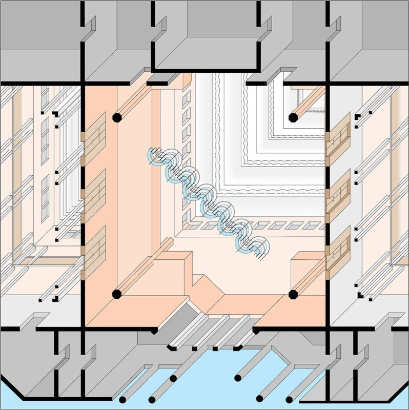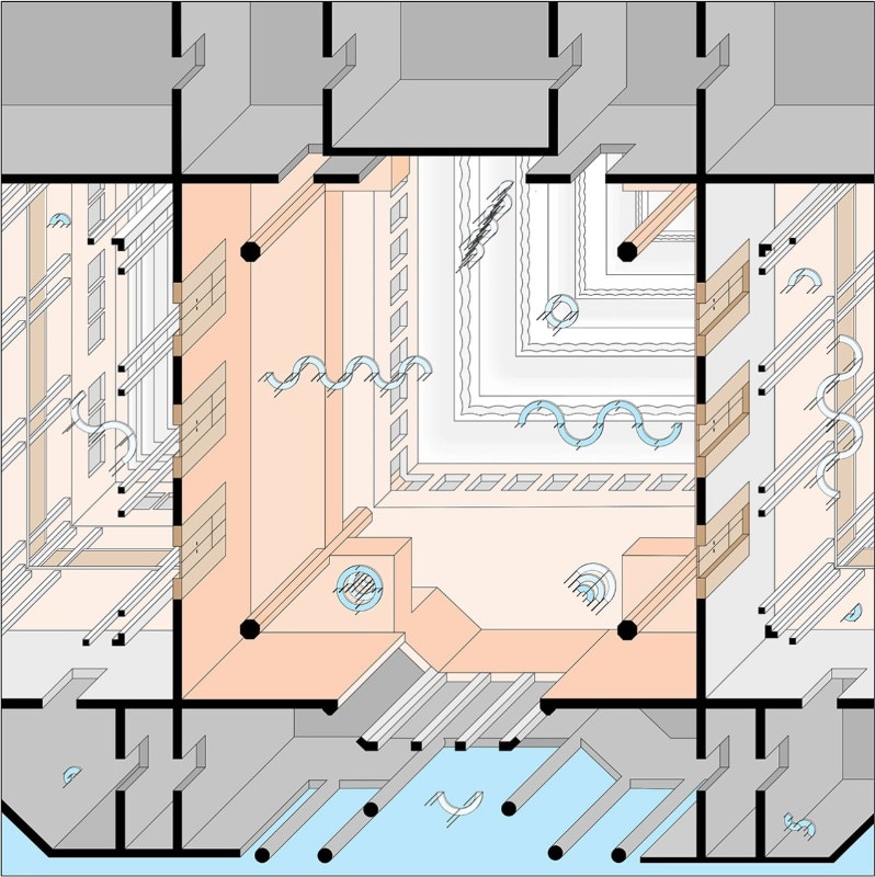 Although he is currently taking his first steps with architecture on a much larger scale, something which requires different forms of language, Vétillard is not afraid to declare the full scope of his design world, using images as a means of narration. His drawings, which are veritable frames in a story, are theoretical places animated by just a few lines and recognisable archetypes, fragments of space where the human figure is often absent, represented through the traces of vitality that it produces, thus explaining “the nature of space through its essence”.