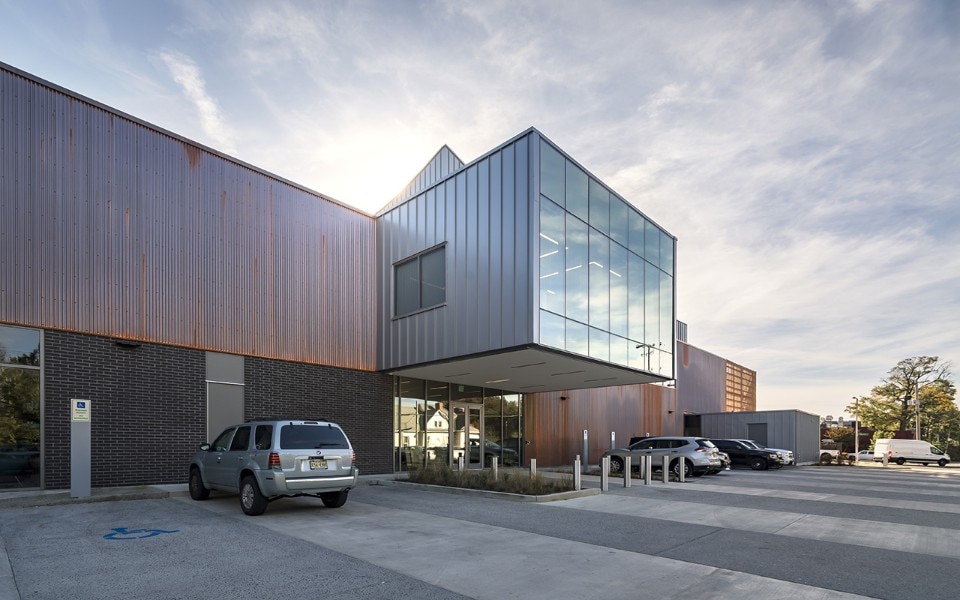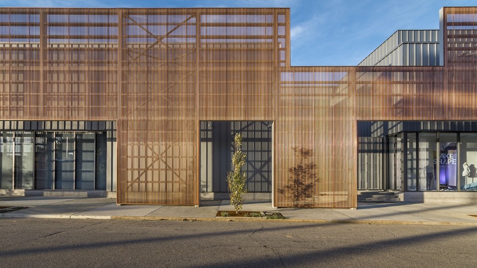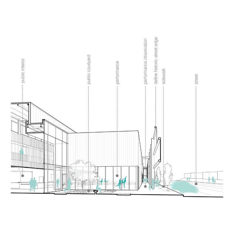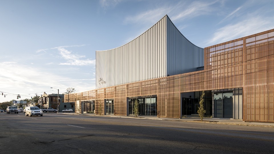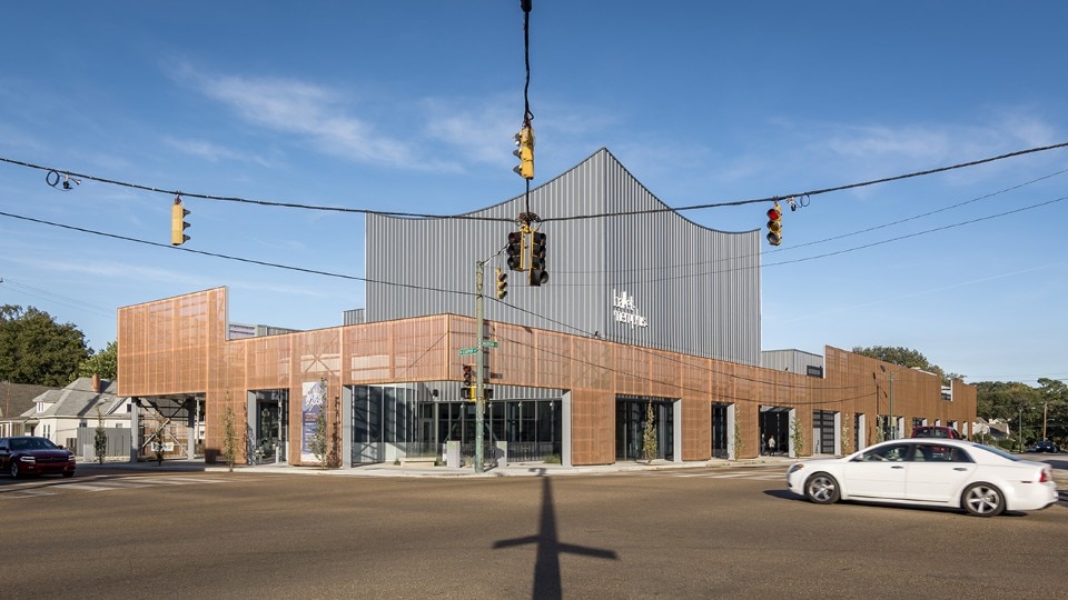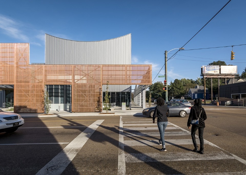 Breaking down the scale of the structure – which square footage amounts to more than 4,000 sqm – has been a necessity for the office, which interpretation of the mission of the company gave priority to the shaping of its public presence as an inclusive space. For this reason, the design features a series of spaces open to the public: courtyards, public interiors and perforated screens as road buffers, all aiming to foster the participation of the local community in the activities of the organisation. These areas also include retails, a café, and a costume shop. The core of the program consists of rehearsal spaces for the professional company, a dance school for over 200 children, a performance venue, community dance and pilates classes. Thanks to its design, the new building for Ballet Memphis participates to the revitalisation of the district.