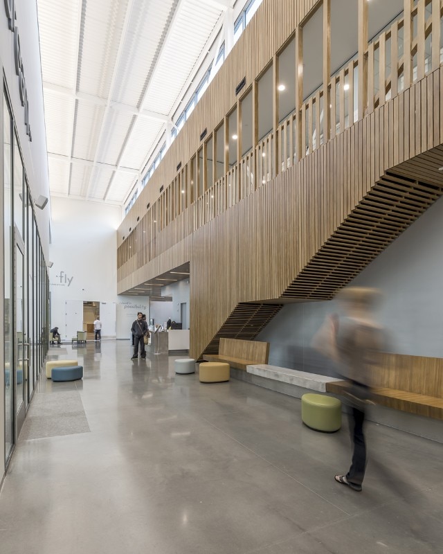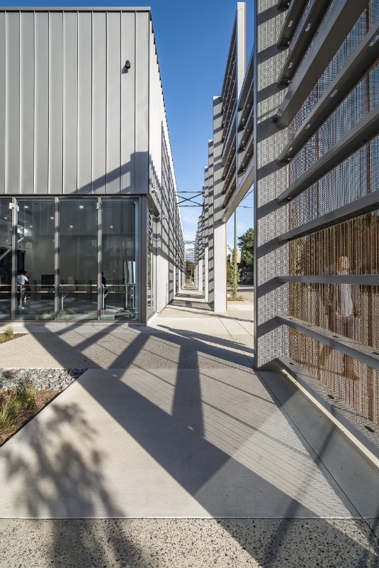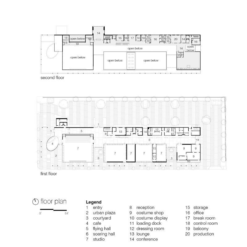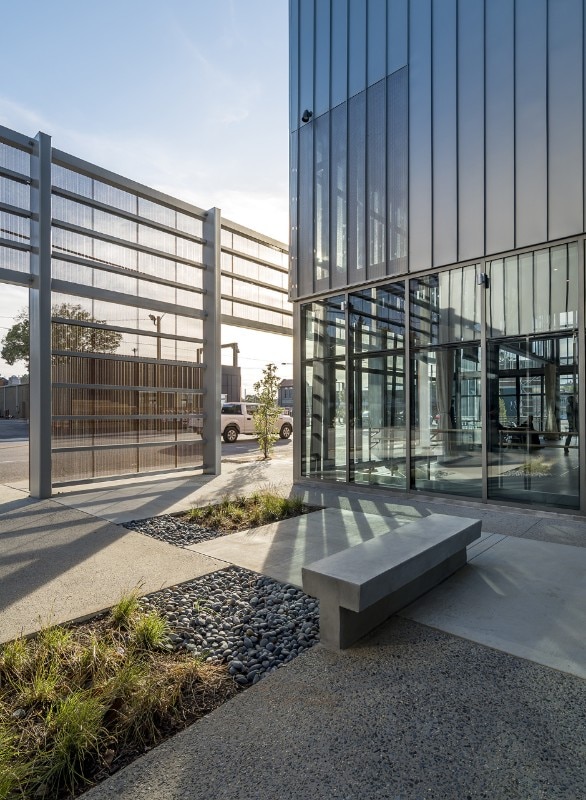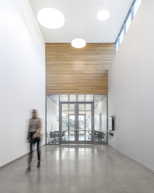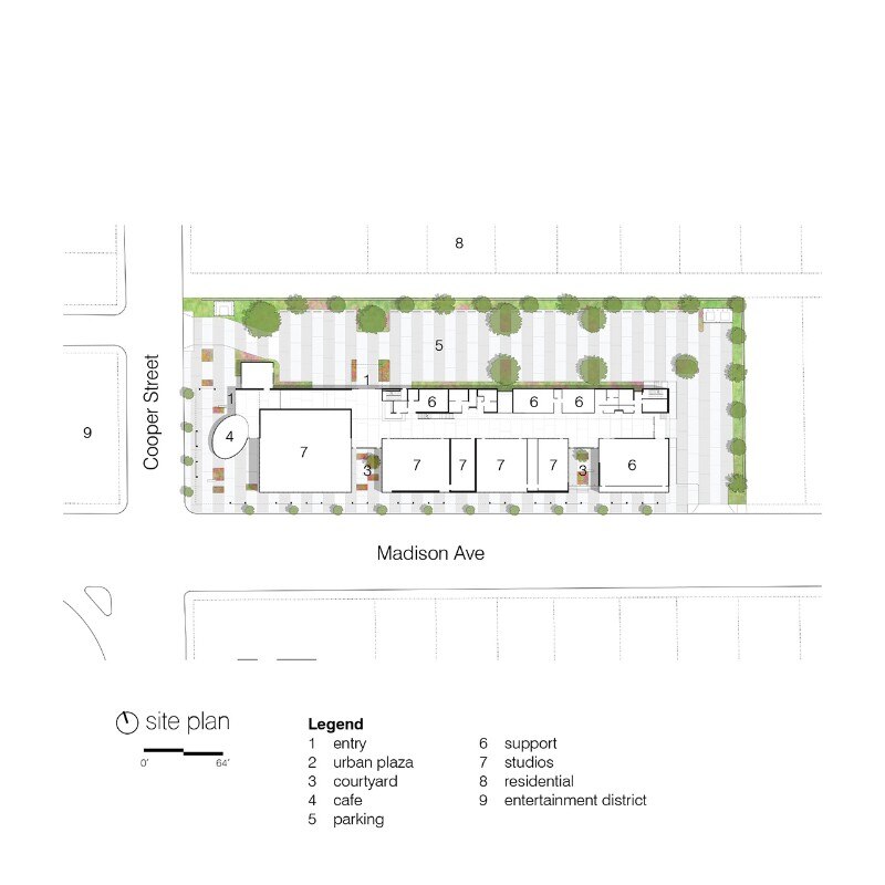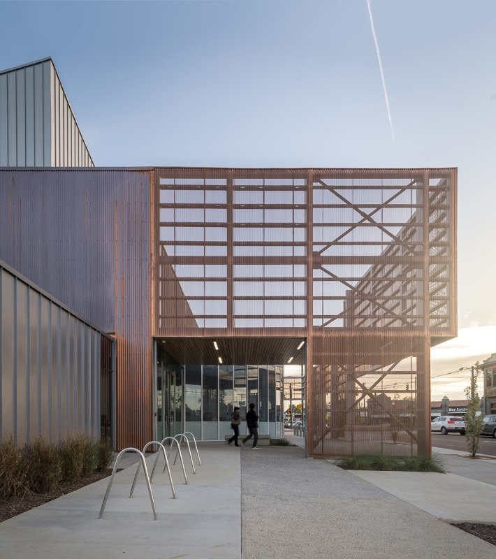 Breaking down the scale of the structure – which square footage amounts to more than 4,000 sqm – has been a necessity for the office, which interpretation of the mission of the company gave priority to the shaping of its public presence as an inclusive space. For this reason, the design features a series of spaces open to the public: courtyards, public interiors and perforated screens as road buffers, all aiming to foster the participation of the local community in the activities of the organisation. These areas also include retails, a café, and a costume shop. The core of the program consists of rehearsal spaces for the professional company, a dance school for over 200 children, a performance venue, community dance and pilates classes. Thanks to its design, the new building for Ballet Memphis participates to the revitalisation of the district.