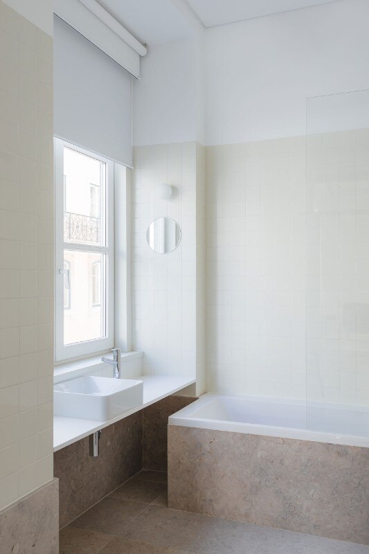 The floor has been carefully subdivided to create three new apartments, without the addition of corridors or extra circulation spaces commonly added in contemporary renovations in the city. This attention retains the “integrity” of the Pombalino building, which was built to new seismic resistance standards following the 1755 Lisbon Earthquake under Prime Minister Marques de Pombal – from whom the typology gains its name.