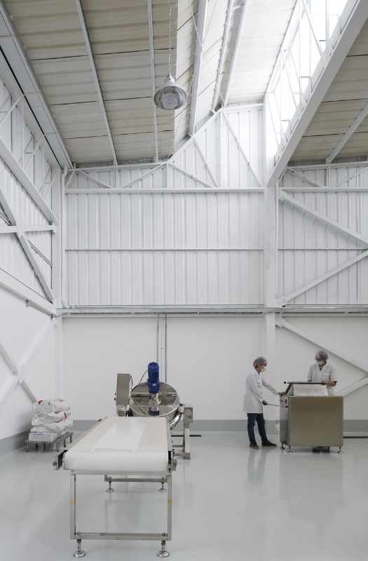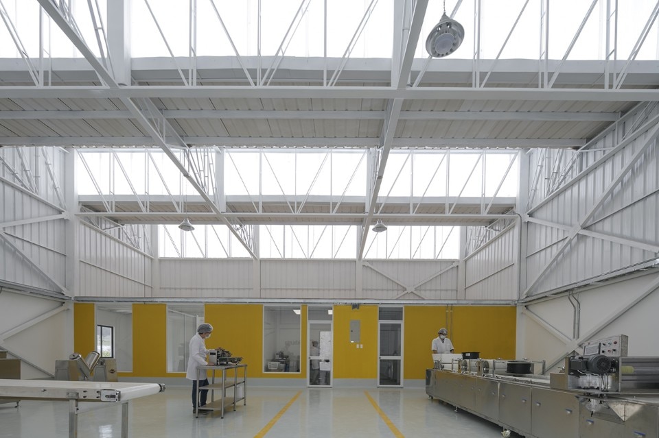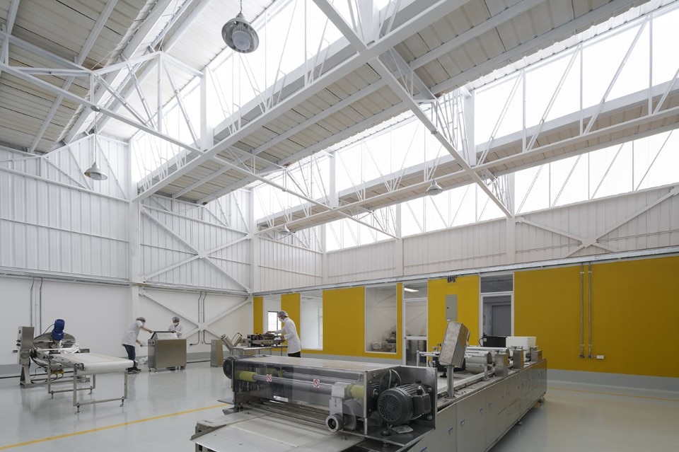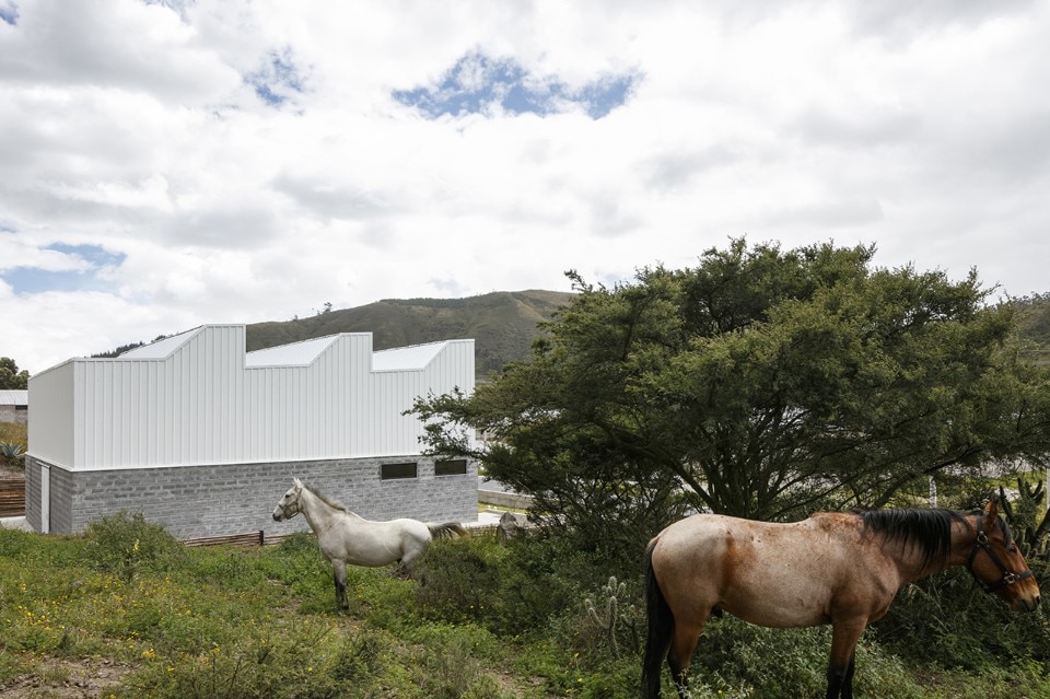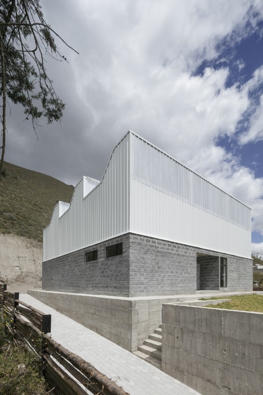 The Quito-based firm TEC Taller EC completed the headquarters of a company that produces cereals, such as quinoa and amaranth, provided by local producers. The 300 sqm structure is located on a terraced site in the rural parish of Calacalí, close to the Pululagua volcano. The squared-plan is divided in three spans that correspond to the modules of the roof: three skylights open towards East.