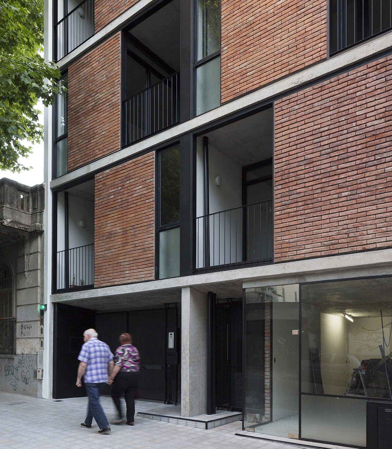 A simple and economical construction system is the basis of Aráoz 967, a residential building designed by BAAG in Buenos Aires. The project features a fully exposed reinforced concrete structure, brick, metal and glass prefabricated elements to compose the facade and wooden cores for the facilities (bathroom and kitchen).