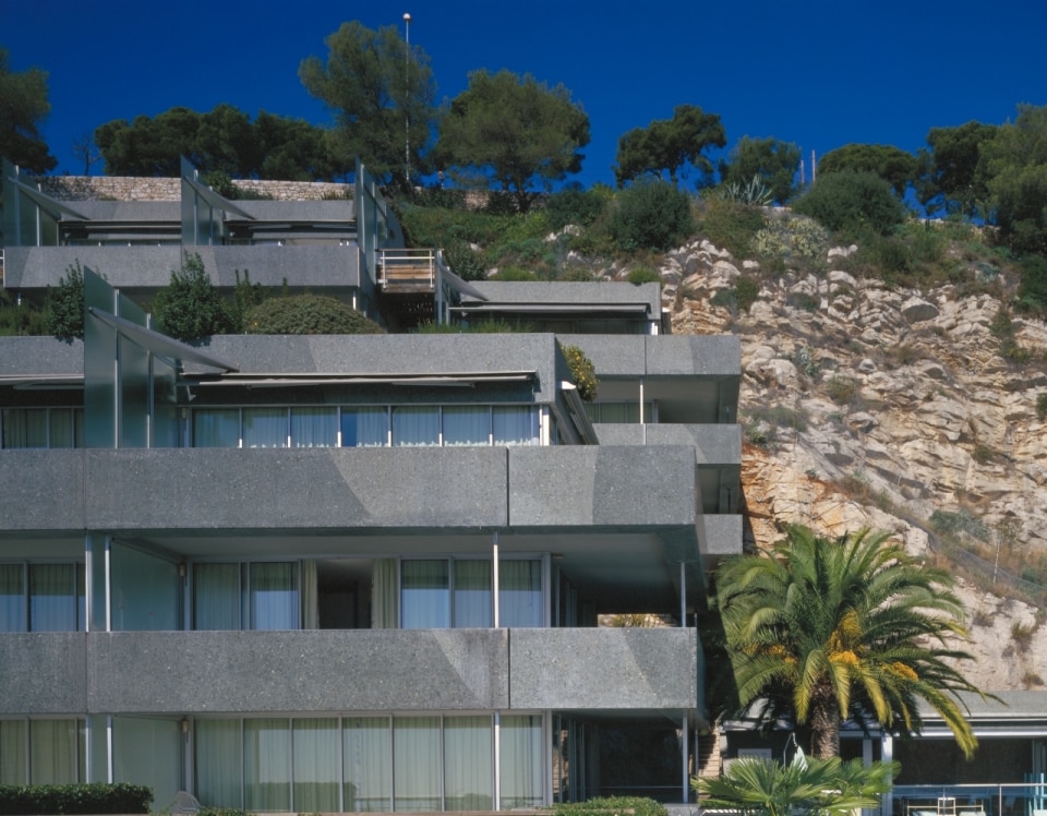 “The site? It’s steep. Rocky. Partly hollowed out by a quarry. Almost a cliff. Pine trees and agaves cling to its surface between the rocks, on the slope overlooking the sea. Architecture also clings to it. It lodges itself deep down, reinforcing the cracks in the rocks. It is mineral. It is minimal”. This is how Jean Nouvel, Pritzker Prize-winning architect and Domus Guest Editor in 2022, describes his Pierre et Vacances residences, completed in 1991 on the rocks of Cap d’Ail.
