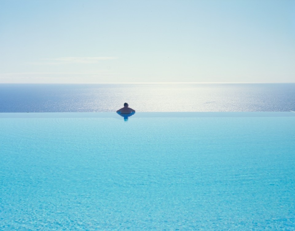 A holiday architecture conceived with a radical contemporary vision: contemporary in its formal language, like a cascade of volumes descending toward the sea; and contemporary in its sensitivity to dialogue with the material of the landscape; with the stone, the plants, and the water, both the sea and a “chameleon blue” swimming pool that blends into the sky, just as the architecture blends into the site, giving back to the rock the mass that had once been taken from it.