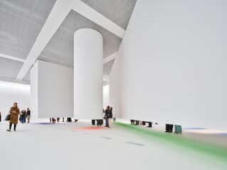 The 700m-long circular structure is elevated about 10m above the ground at its highest point and scatters among the trees respecting their natural space. The circular shape was deliberately chosen, as it symbolically refers to the annual rings in the tree trunks. By adopting tall, thin Corten steel pillars painted in a brownish colour, it blends in with the surrounding fir trees, granting riders an even more immersive cycling experience.