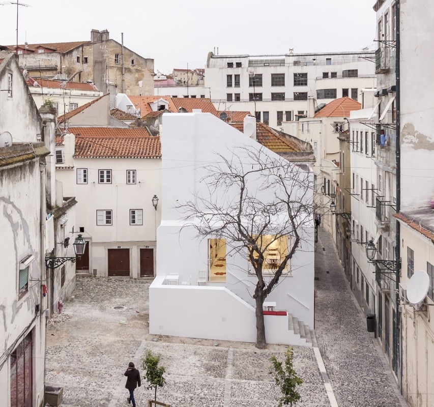 Continuing through the Mouraria district, Lisbon’s multicultural epicentre, we stop at Largo da Severa, where José Adrião Arquitectos studio has transformed a building unit into a new cultural centre. The original building, consisting of three floors with an attic, now had several structural and plant problems. To adapt to the new program, the studio decided to completely demolish the interior, leaving intact only the facade and its strong presence in the area’s urban fabric. Casa da Severa also offers a bar-restaurant that can be accessed directly from the square through a staircase, which acts as a continuation of the public space. Read full article here.