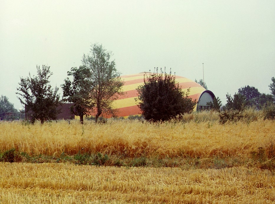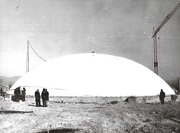 That episode led to Bini’s intuition that even the smallest amount of pressure could lift tons of weight, if distributed over a large membrane properly anchored to a base foundation. This is how the Binishell technique was created. This technique exploits air pressure to create spherical reinforced concrete constructions, the first application of which took place on 5 June 1964 in Crespellano, a village near Bologna.