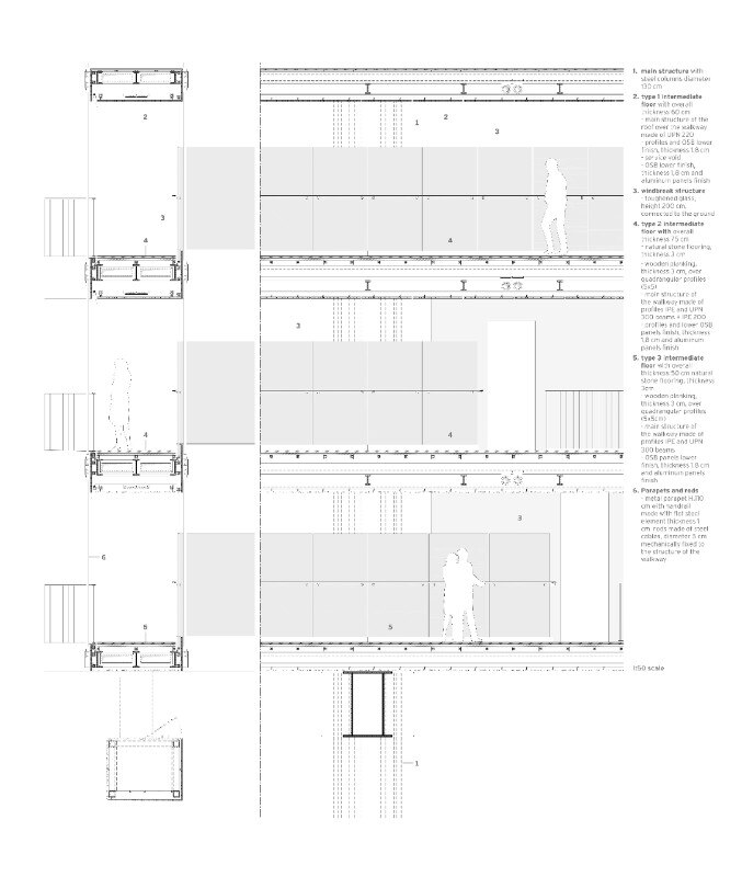 When the previous project got canceled, EAA was commissioned to design a building that could combine the public function of the archaeological park with the private use of the hotel. This dichotomy constitutes the core of the project, but also its greates limit. In the designers’ words, the building program “enabled the togetherness of different social classes feeding each other reinforced the idea of a smooth coexistence of public and private.”