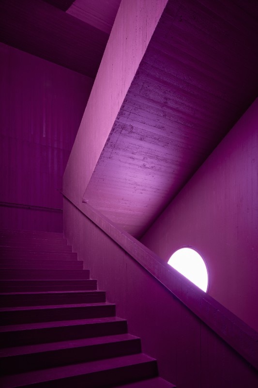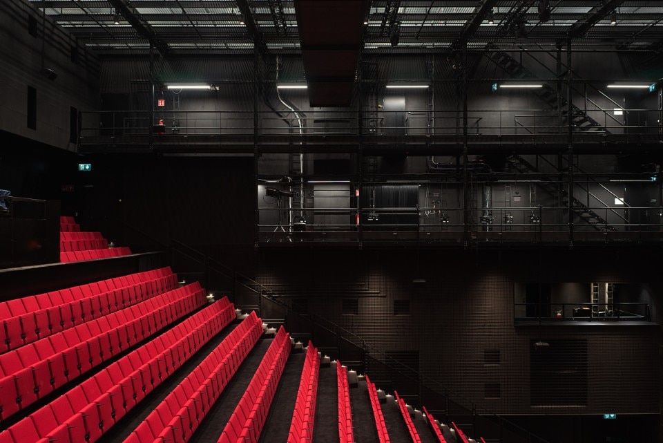 The building is only complete when the dancers and audience arrive. As the visitors enter the spaces, they are invited onto the stage and become part of the performance. In the interiors, robust surfaces of raw steel and concrete meet theatre lighting systems, technical installations and colours. On the outside, lights and shadows play with reflective surfaces. Together, these aim to create a “burlesque”, sly atmosphere that is experiential and stimulates the moment of performance. In the lobby, the interactive light work The Other by artist Eetu Huhtala reacts softly to the visitors’ movements, transforming them into art, just like a dance.