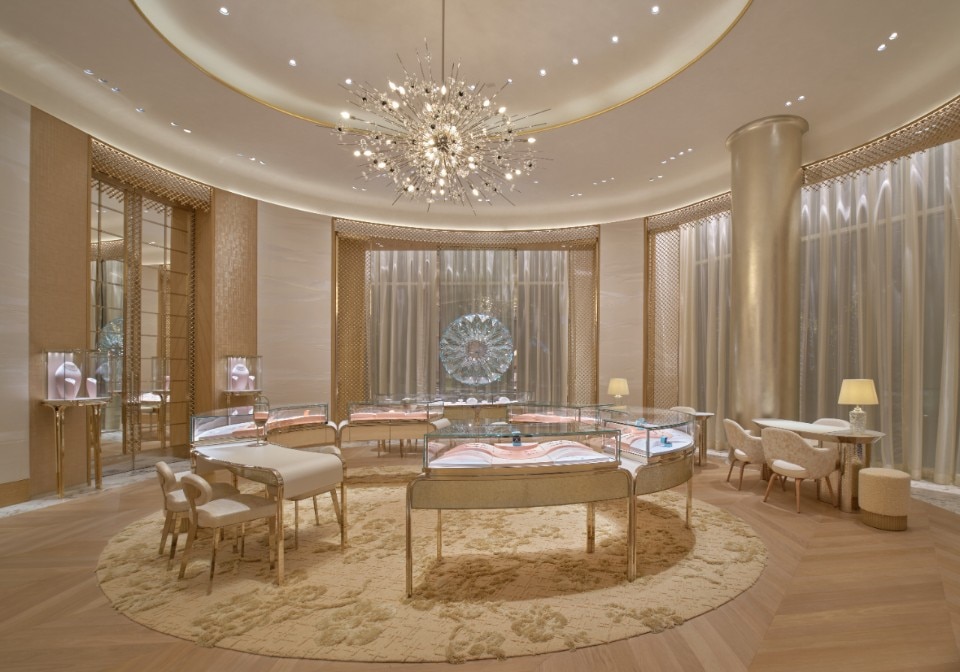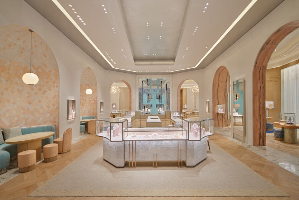 Every room here was designed to bring together traditionally distant worlds: the global and the local, the past and the future, art and business, with the goal of demonstrating that beauty and quality are universal languages. And in this new idea of retail, Tiffany manages to balance opposites in a harmonious way. The Dubai store pays homage to both the brand's 100-year history and to location housing it: alcoves of pink marble from Portugal, whose gradation hues mirror the desert sunsets while the sofas below, an anomaly in traditional jewelry retail, were intended to accommodate families. In fact Tiffany is all about hospitality, and proof of this is the imminent opening of the Tiffany Café, which will open in September, and it will make customers’ and visitors' experience in Dubai even more memorable.