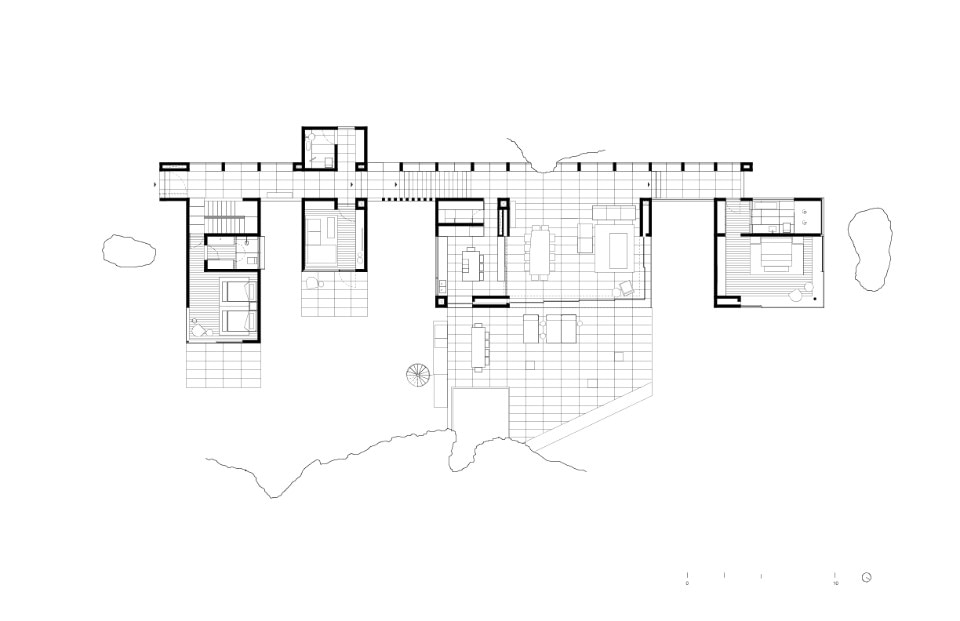 Las Rocas is a residential complex of four villas perched on Mirador La Peña, a promontory that stretches from the Mexican city of Valle de Bravo in the middel of a lake, towards an imposing artificial dam. In order to place each of the four houses on the steep slopes of the cape, the designers conducted a detailed and careful analysis of the site, minimising the impact of the constructions on streams, rocks and vegetation. Read also