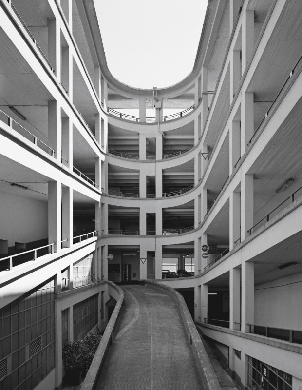 In that now untraceable Milan, where Alfas and Lancias were no less than Ferraris and Lamborghinis and more than Aston Martins, Jaguars, and Mercedes, one could not only have the car but also a place to protect and safeguard it, perhaps only the two hours of a lunch in Loro Piana double-breasted suits and Bardelli shirts. The Garage of Nations was the answer to this desire for status, for representation, for class. An architecture that smelled of exclusivity, privilege, belonging, recognition who "had arrived" having made technological progress their flag. Always with the understatment, however. In the perspective of Domus, which was then already great, those ramps that intersected in space in search of an elsewhere, those pillars that supported the structure with lost grace confirmed Italian postwar architecture among the few capable of transforming function into beauty. And a garage into a declaration of love for aesthetics and politics. Thus in the heart of Milan a certain idea of modernity was taking shape, renewing Marinetti's foreboding born not far away: the automobile is more beautiful than the Nike of Samothrace.